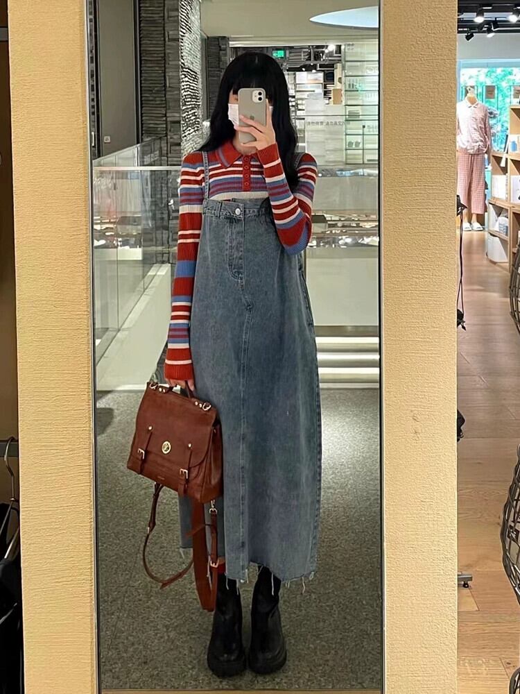 デニムサスペンダードレスの女性、秋のスタイル、女神スタイル、2023新しいスタイル、ユニークで美しいスカートの小人 オータム 秋物 8571641799277532