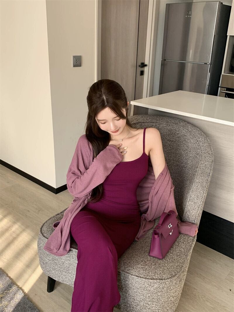 色:イソギンチャクパープルサスペンダードレス,ライトロータスカーディガン