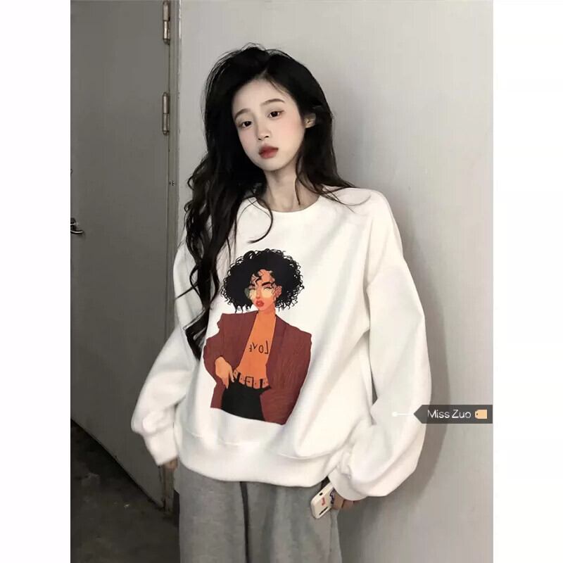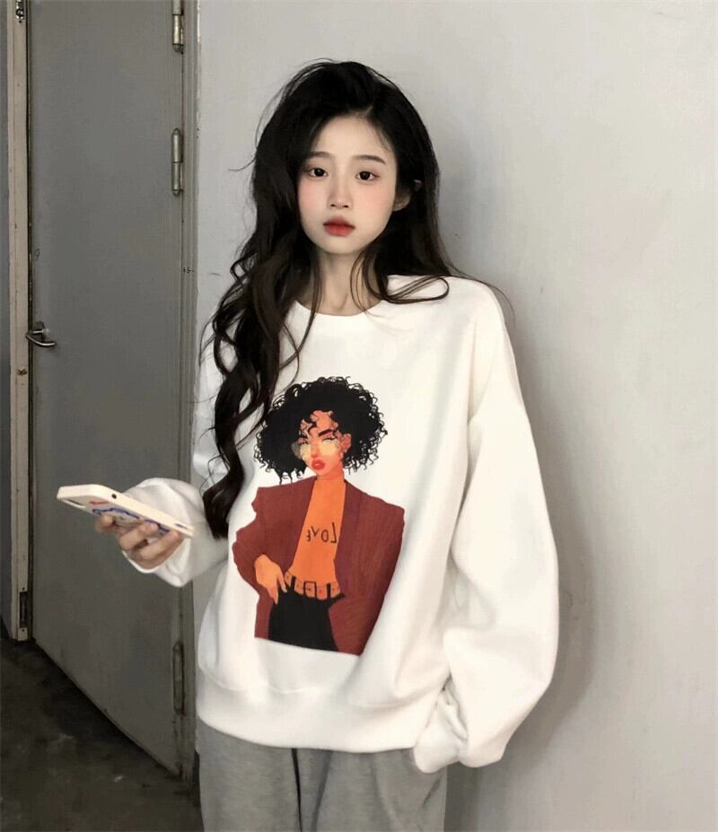 ベルベット肥厚ラウンドネックスウェットシャツ女性小柄春 2023 新スタイル怠惰なスタイルルーズ長袖トップ ロング スプリング 春物 Oネック 8571676198993661