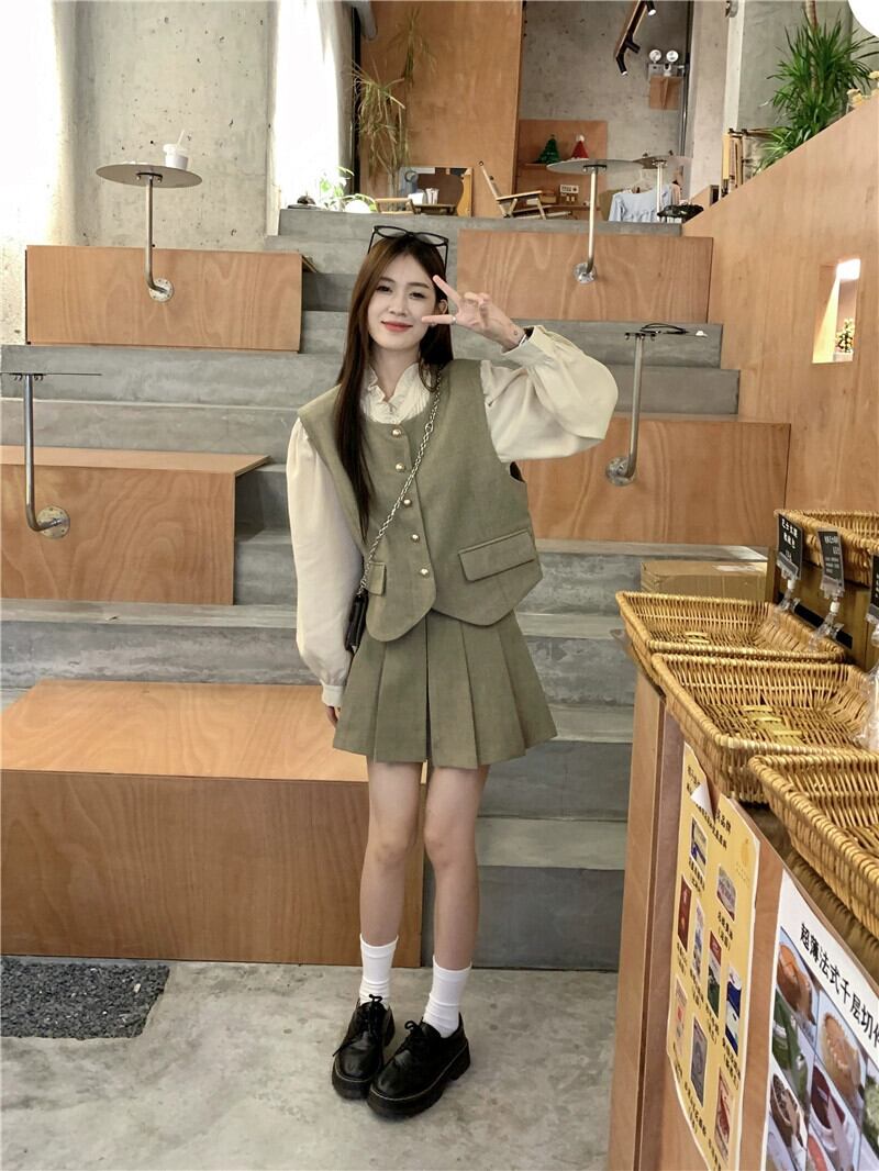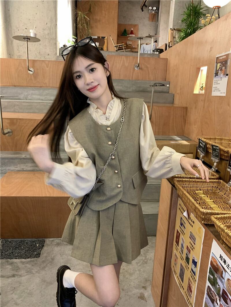 色:ベスト,シャツ,短いスカート
