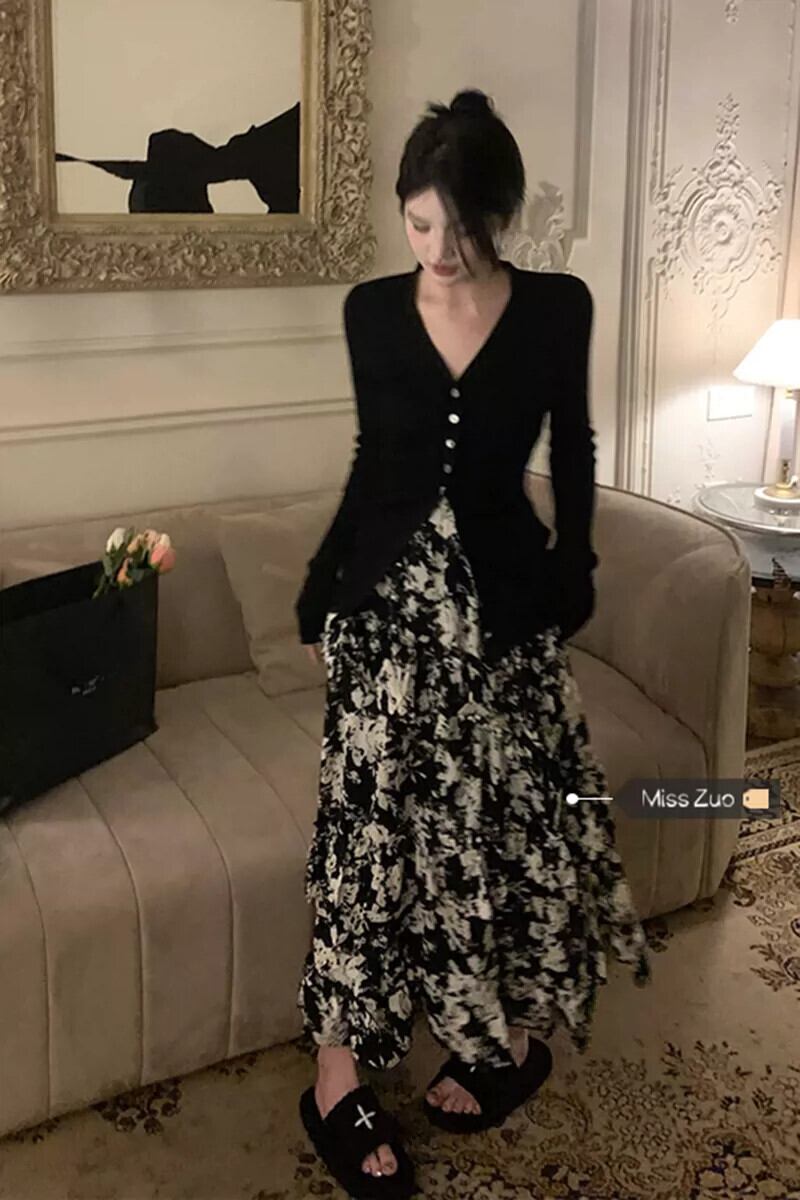 色:コート,フローラルスカート