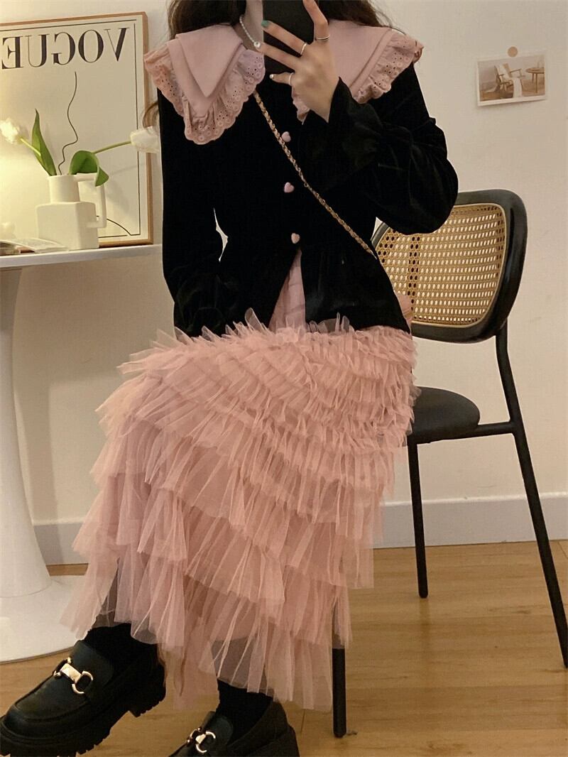 色:ブラックトップ,ピンクのケーキスカート