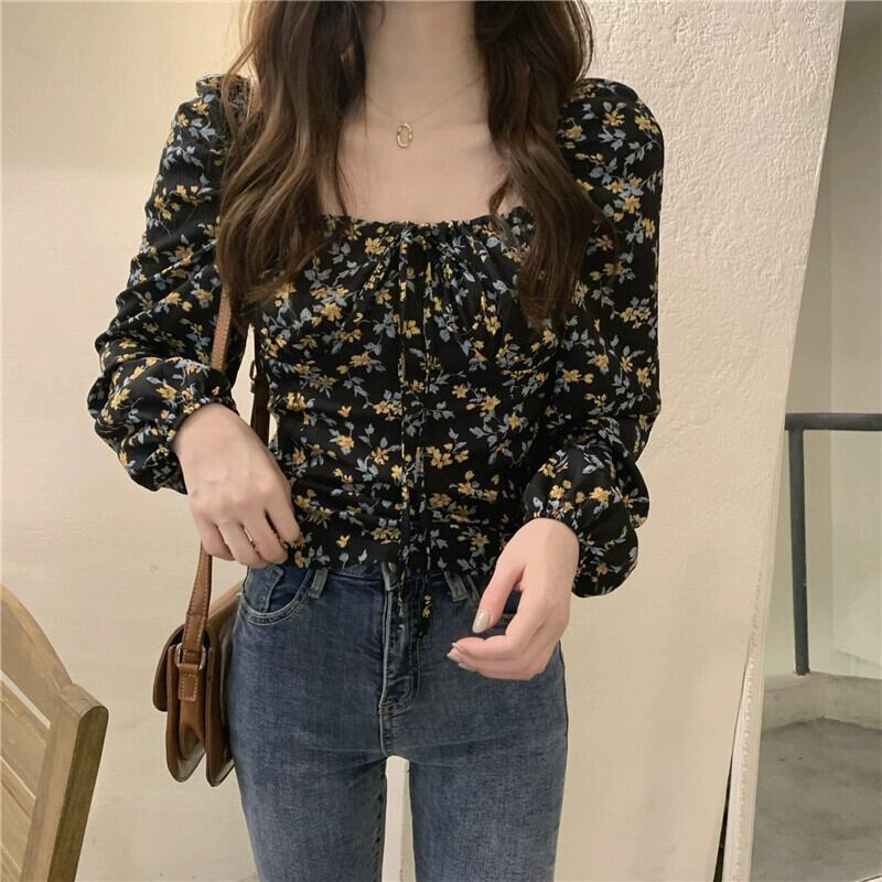 花柄長袖シャツ女性 2023 春の新デザインニッチフレンチハイエンドシックなパフスリーブトップ ロング スプリング 春物 8571640519631474