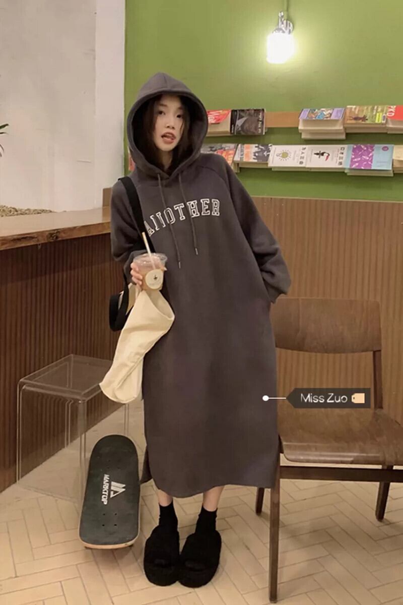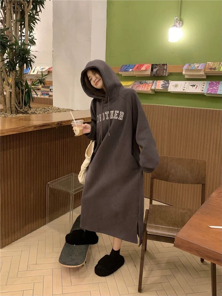 小さなベルベットのスウェットシャツドレスの女性の秋冬 2023 新しい緩い怠惰なスタイルのスカートニッチデザイン オータム 秋物 ウィンター 冬物 8571690392437762