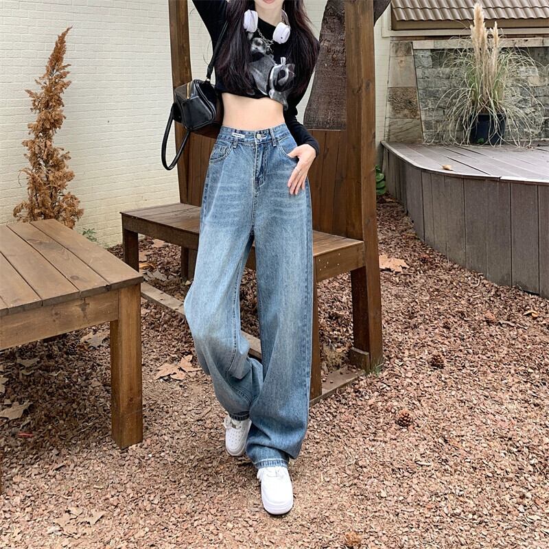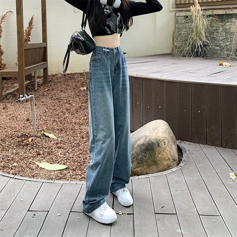 ブルージーンズレディースルーズストレートレッグ2023秋新作洋梨型ハイウエストスリムフロアレングスワイドレッグパンツ オータム 秋物 8571665423383765
