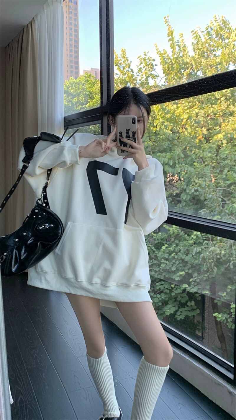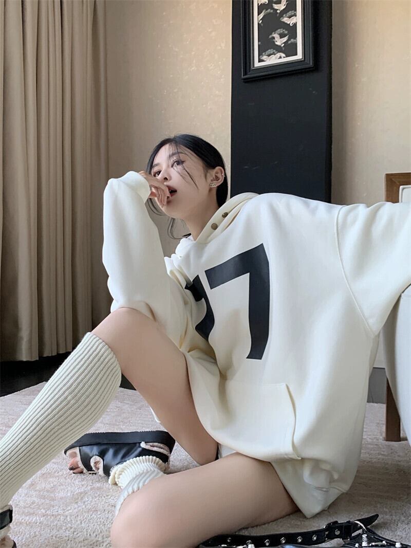 怠惰なスタイルのフード付きスウェットシャツの女性のデザインニッチ秋 2023 新しい緩い香港スタイルのレトロシックなトップ オータム 秋物 8571618657246471