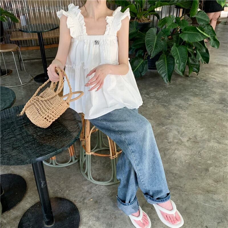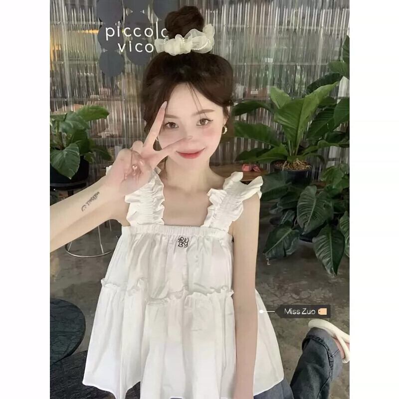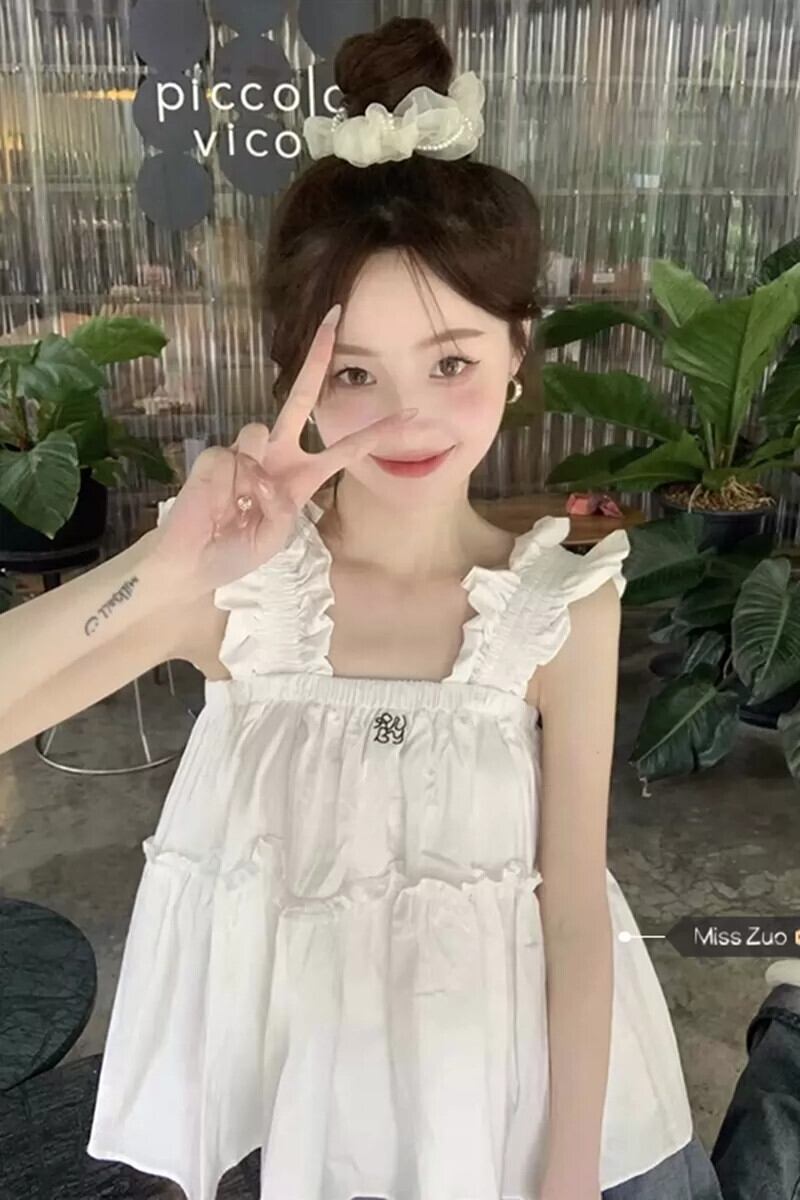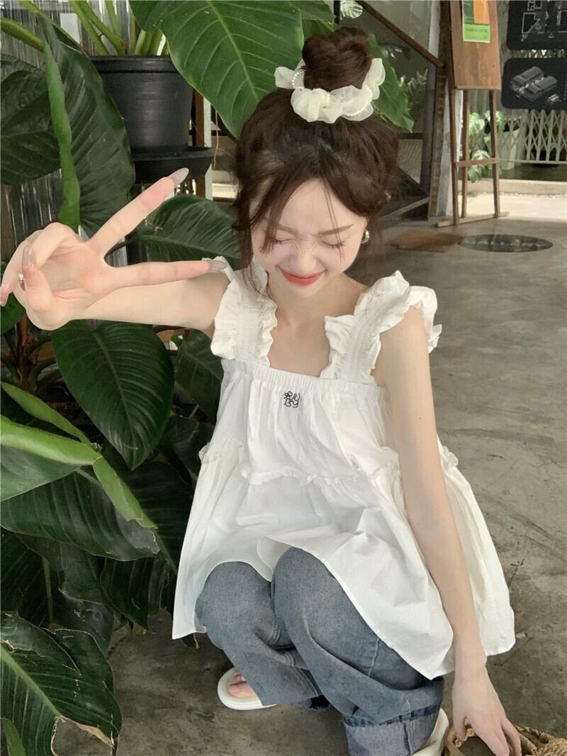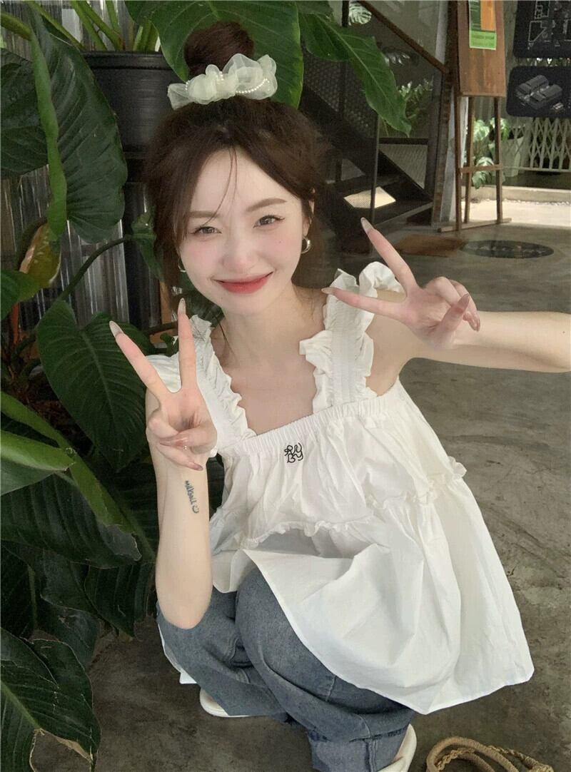 白いノースリーブシャツの女性のデザインニッチ夏2023新しいフランスの甘くてシックなベビードールトップ ホワイト 大人ガーリー スウィート キュート カジュアル サマー 夏物 8571646447926879