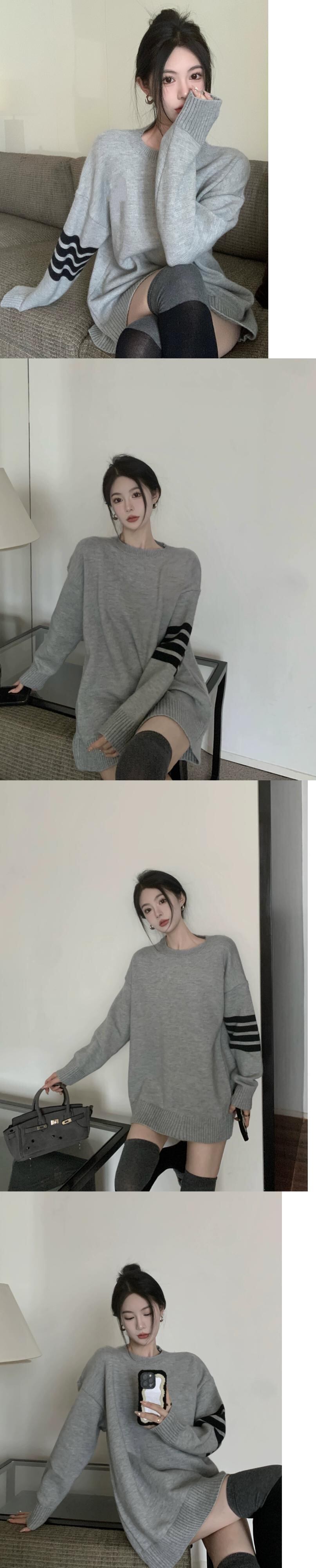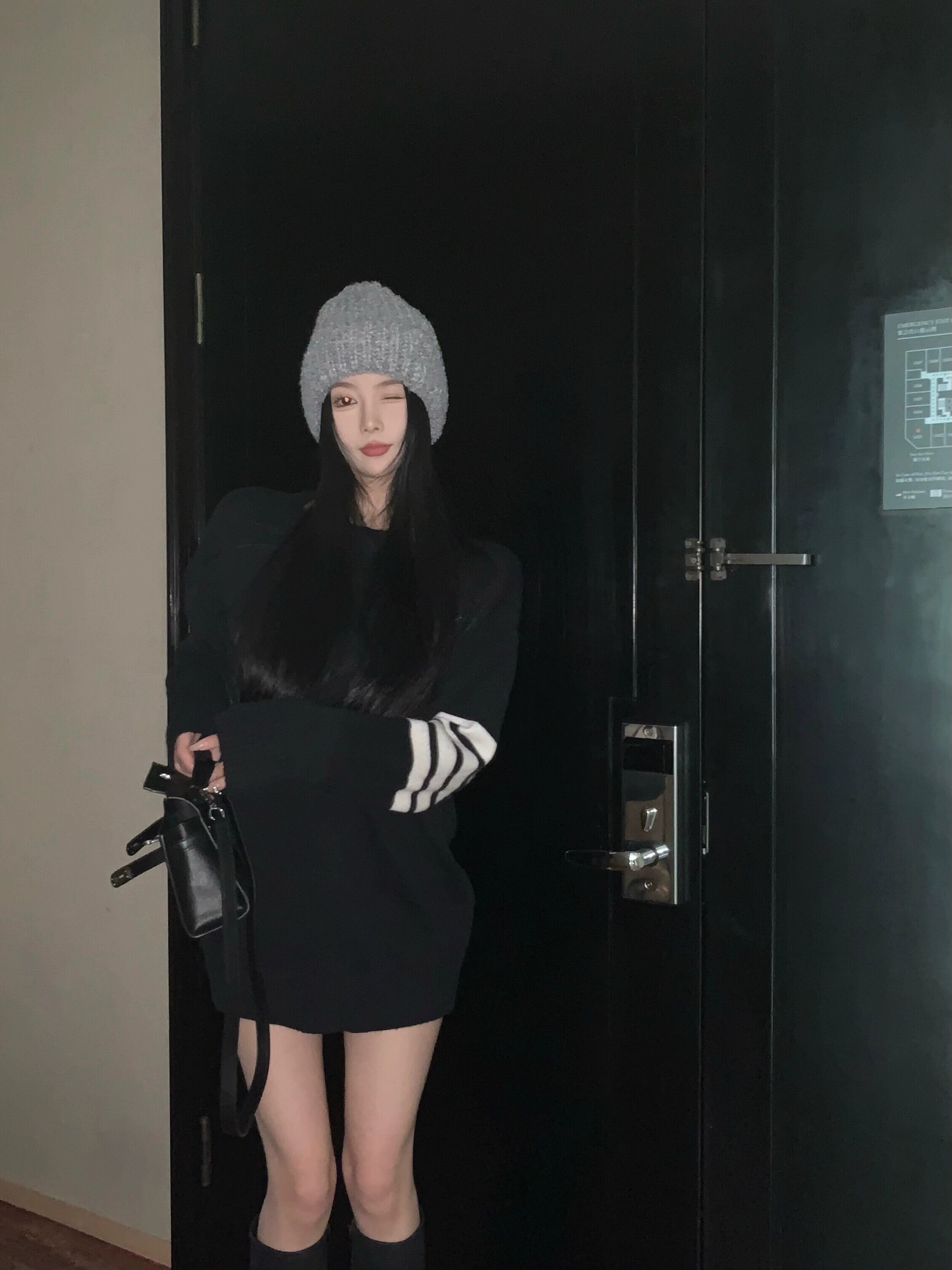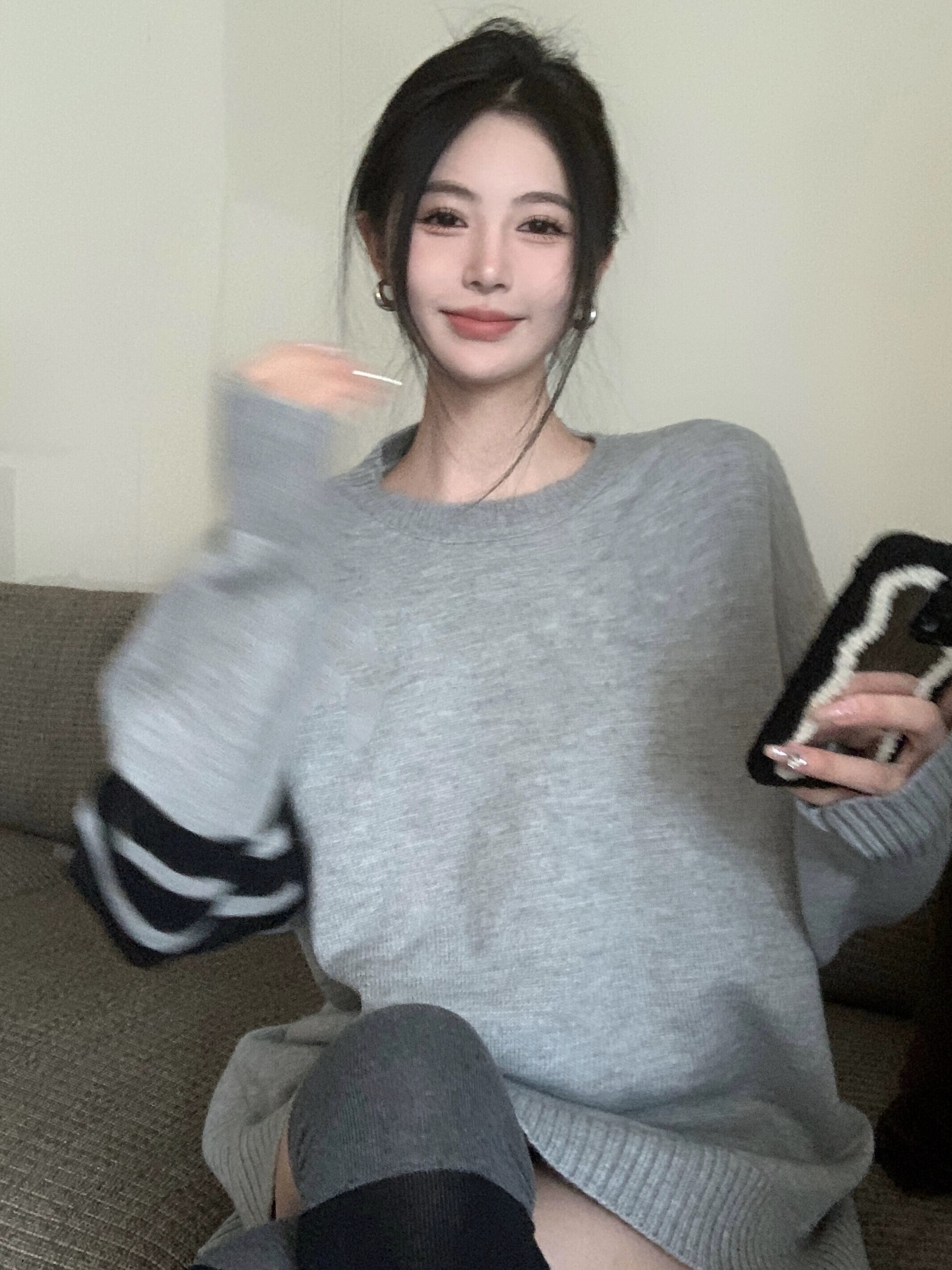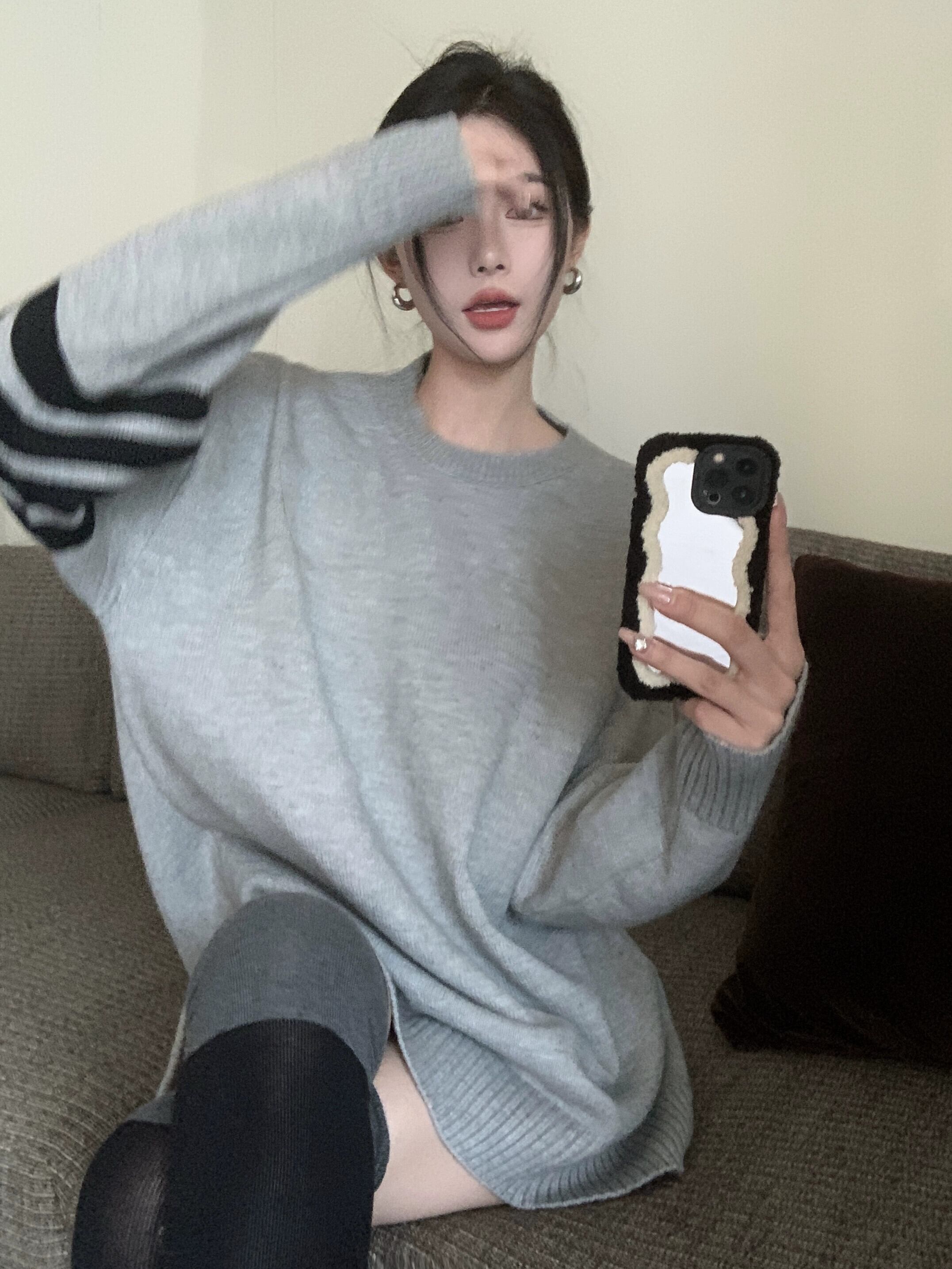黒のミッドレングスのセーターの女性のお尻カバー 2023 秋の新しいアメリカンレトロなゆったりとした怠惰なスタイルのセーター ブラック オータム 秋物 8571662131768392