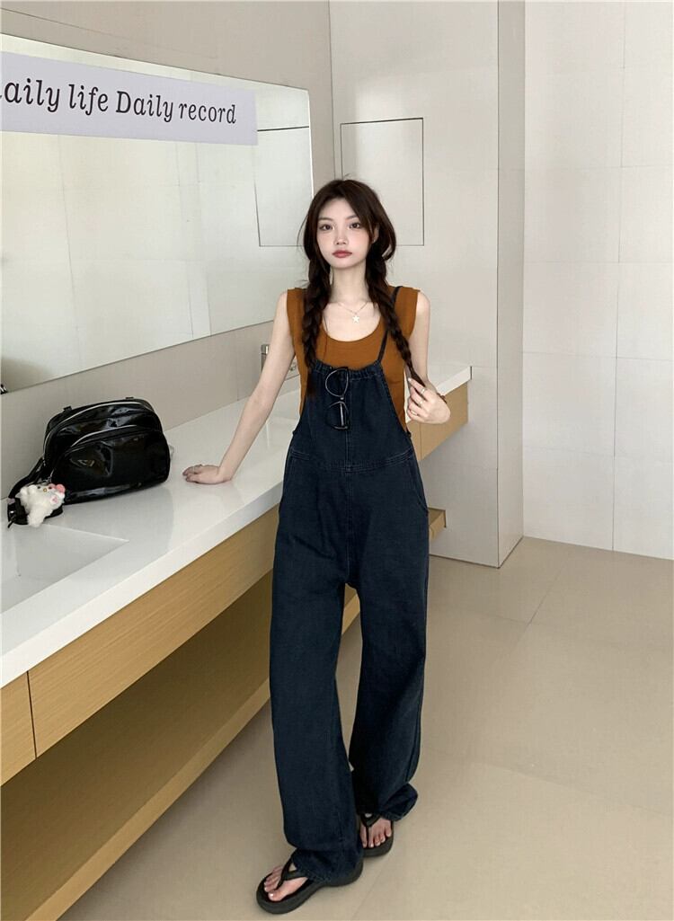 デニムオーバーオールの女性、小さいスタイルのゆったりとした夏の2023新しいデザインのニッチワンピースワイドレッグパンツ サマー 夏物 8571657137285013