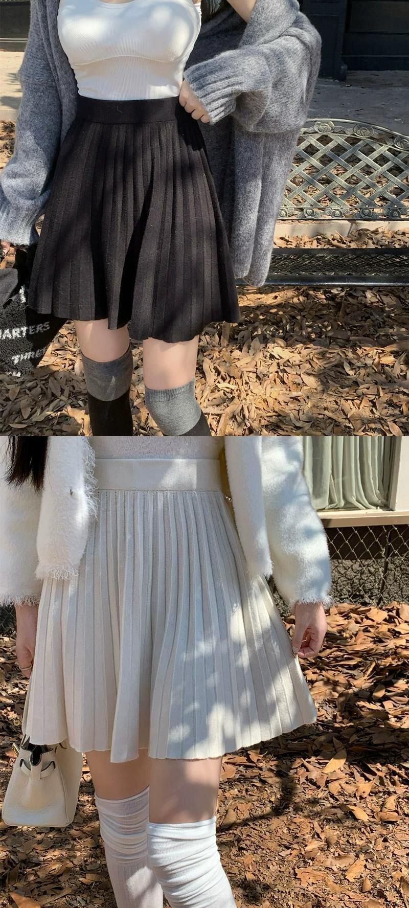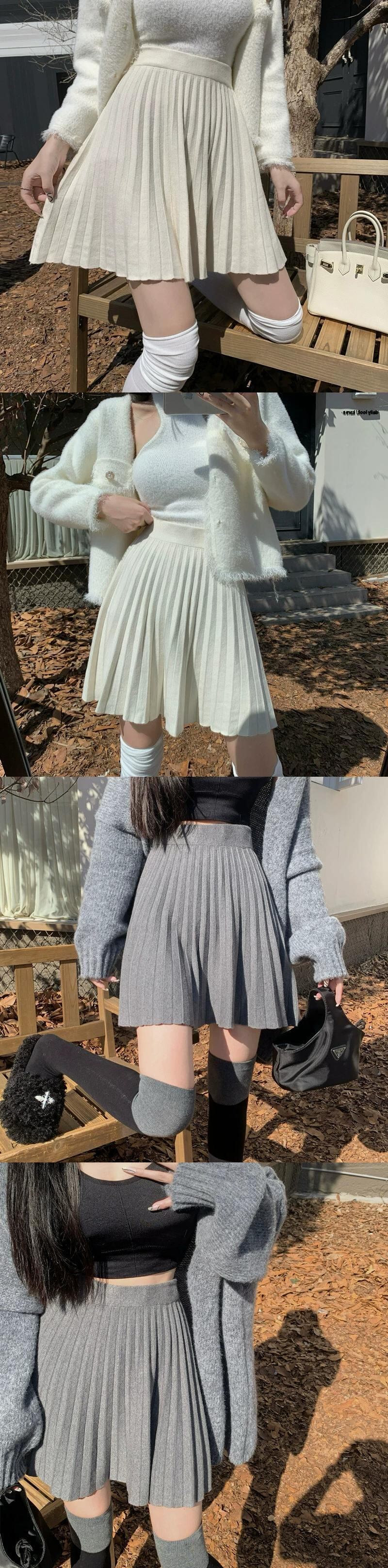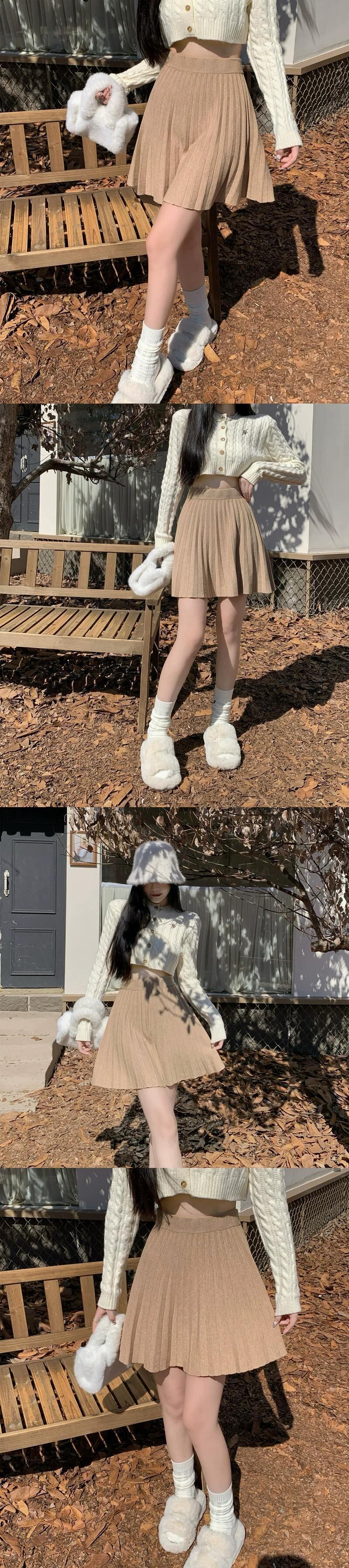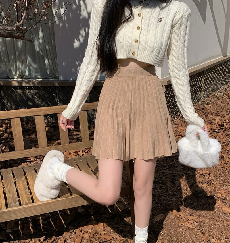 ニットプリーツスカート小さな女性の春と秋 2023 新しいハイウエスト A ラインスカートシックな痩身ショートスカート スプリング 春物 オータム 秋物 Aライン 8571620113665814