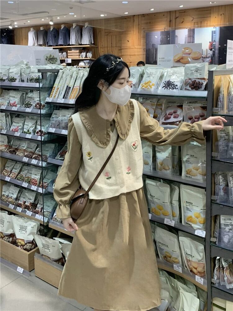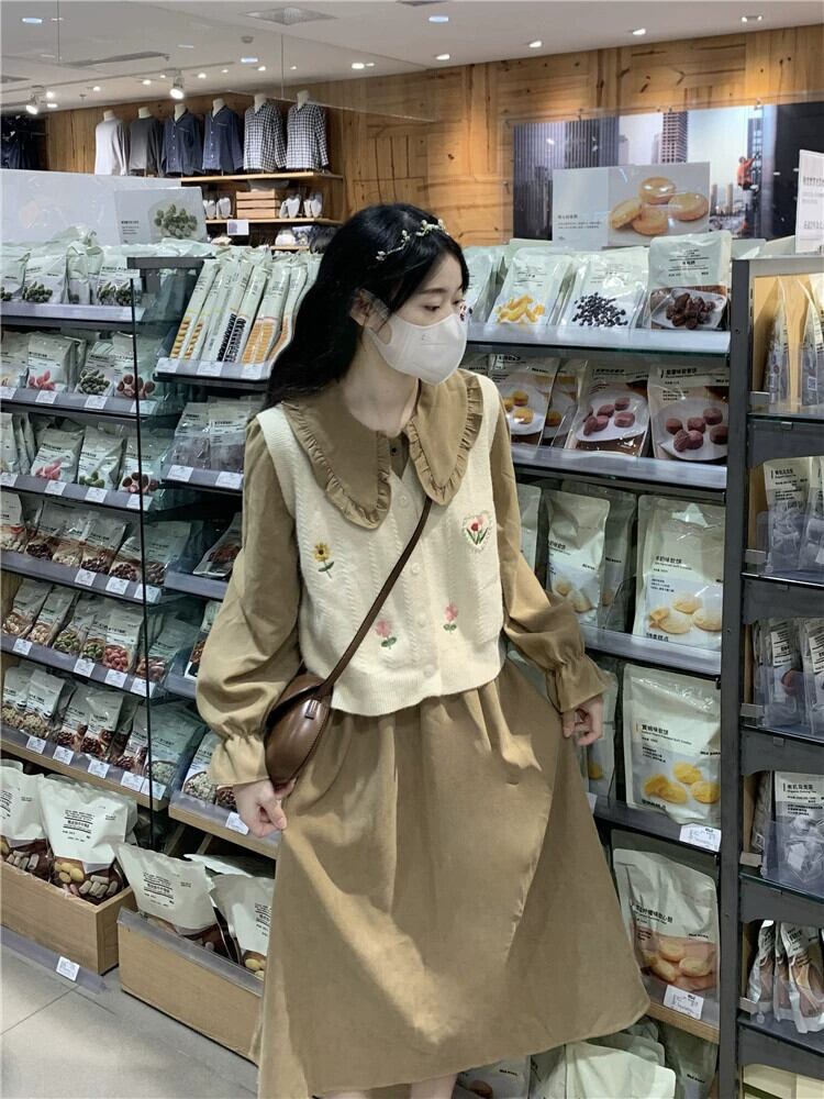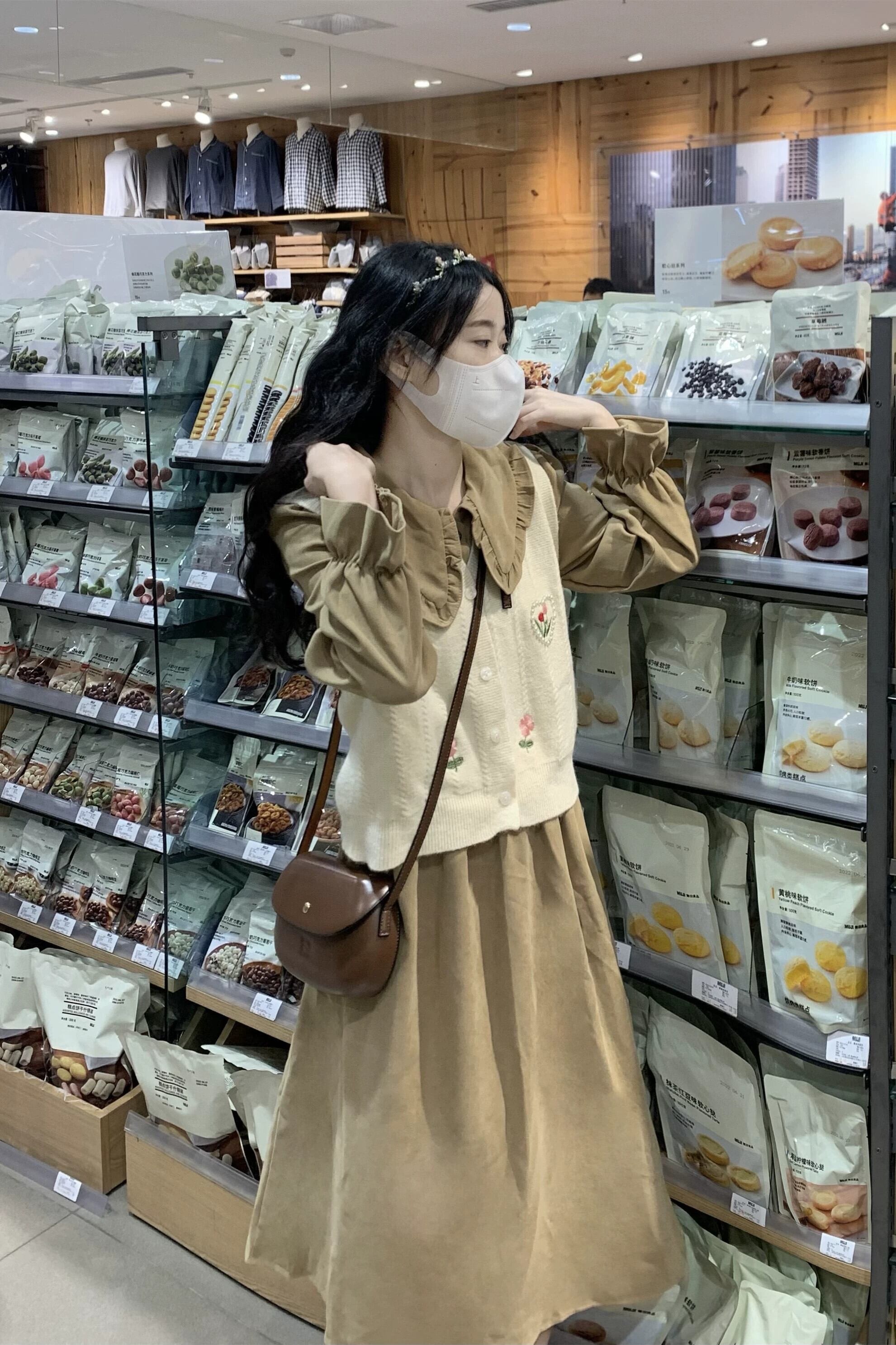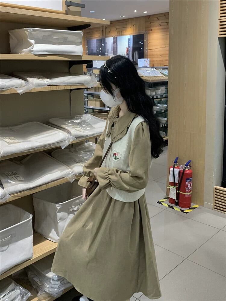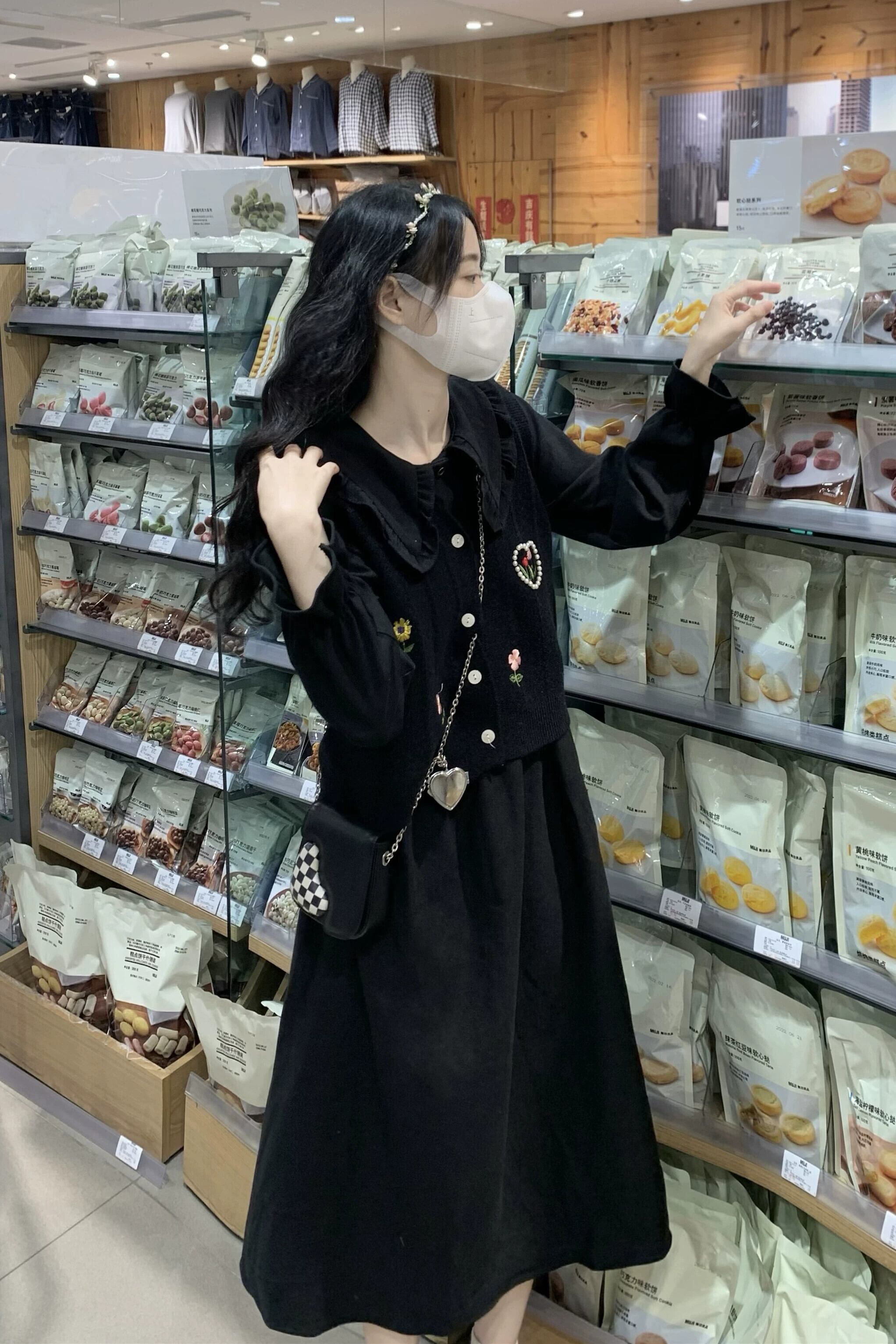ベビードールの襟長袖ドレス女性 2023 秋の新しいスタイルの小人が着るニッチデザインのロングスカート オータム 秋物 8571663826926768