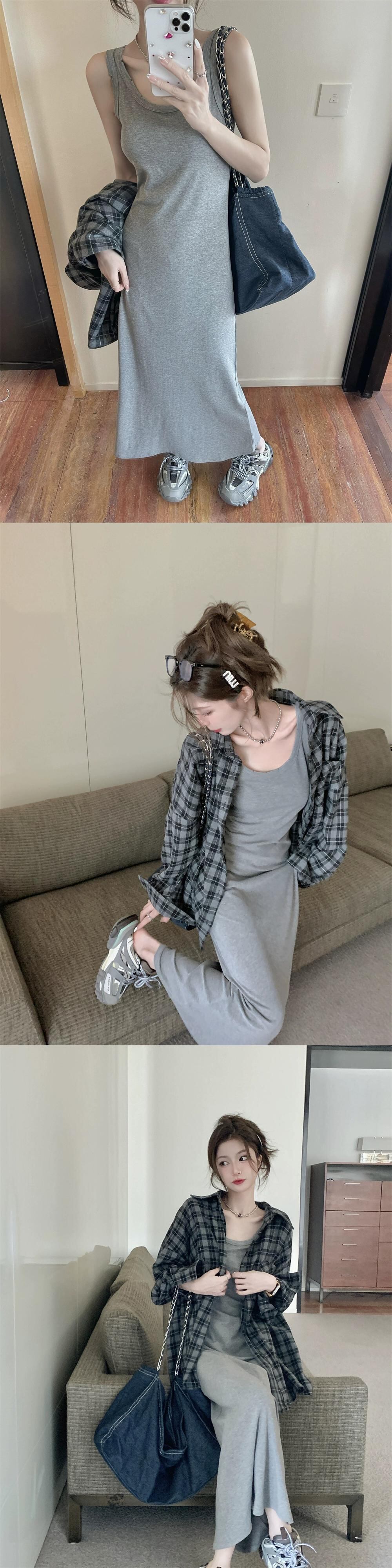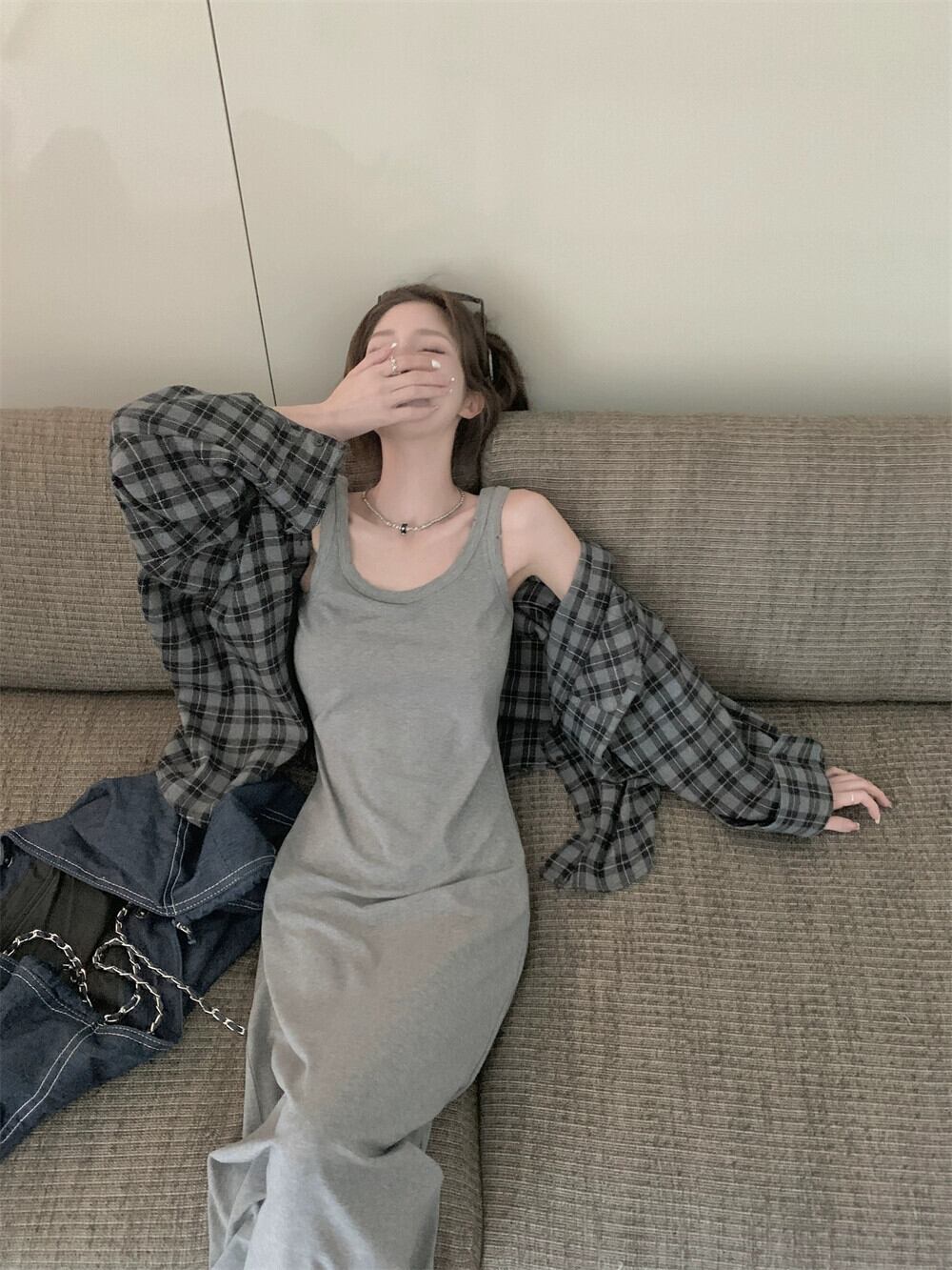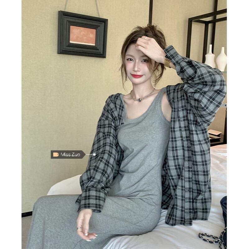 チェック柄のシャツジャケットの女性のデザインニッチシャツ 2023 春の新スタイルのレトロな香港スタイルのルーズ長袖トップ ロング スプリング 春物 8571645528644932