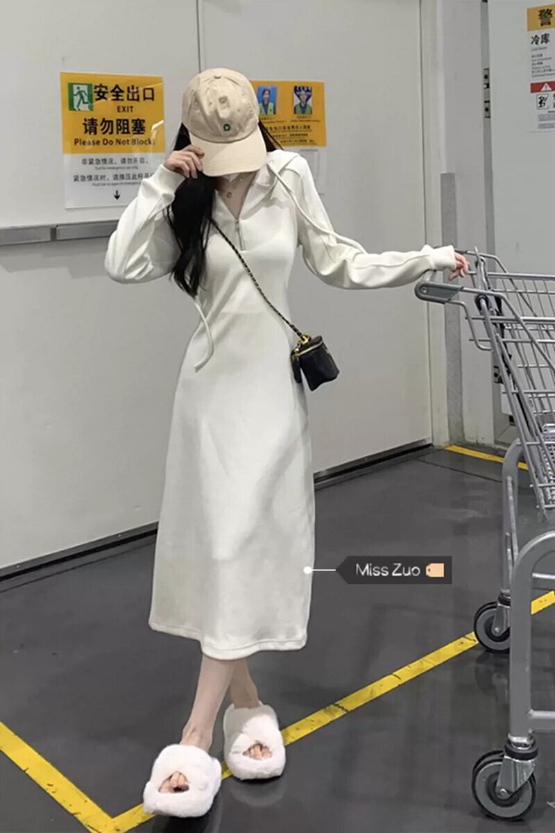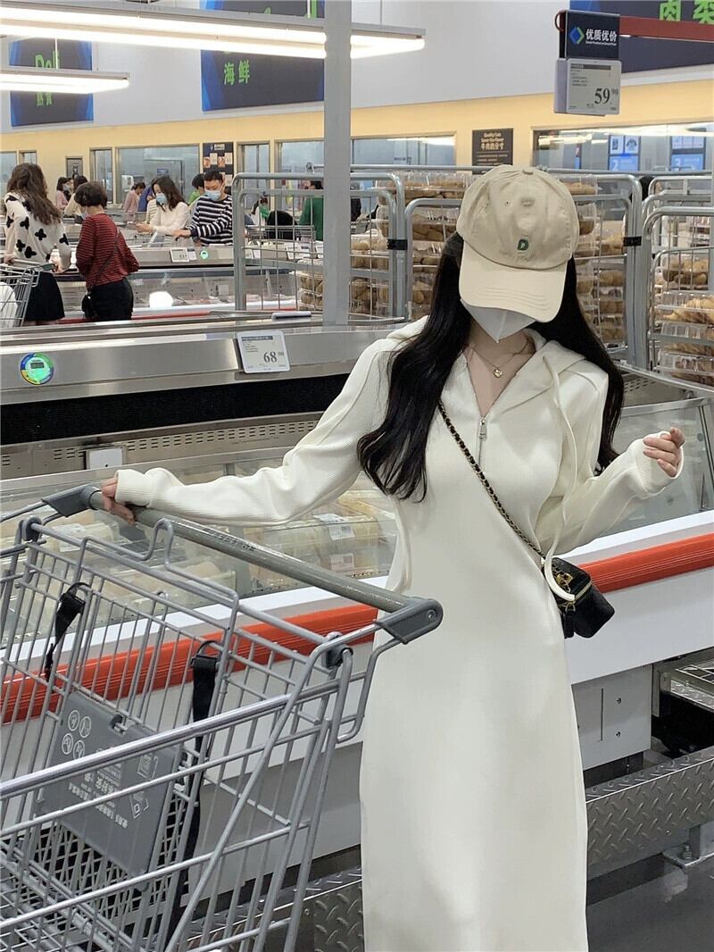 フード付きスウェットシャツドレスの女性の秋 2023 新スタイルの小さなシックなユニークなウエスト痩身カジュアルロングスカート オータム 秋物 8571626766966846