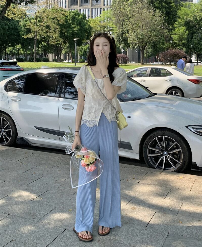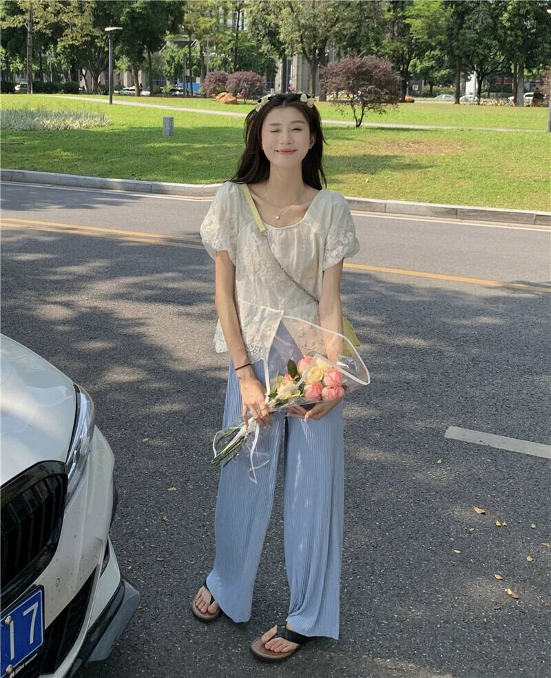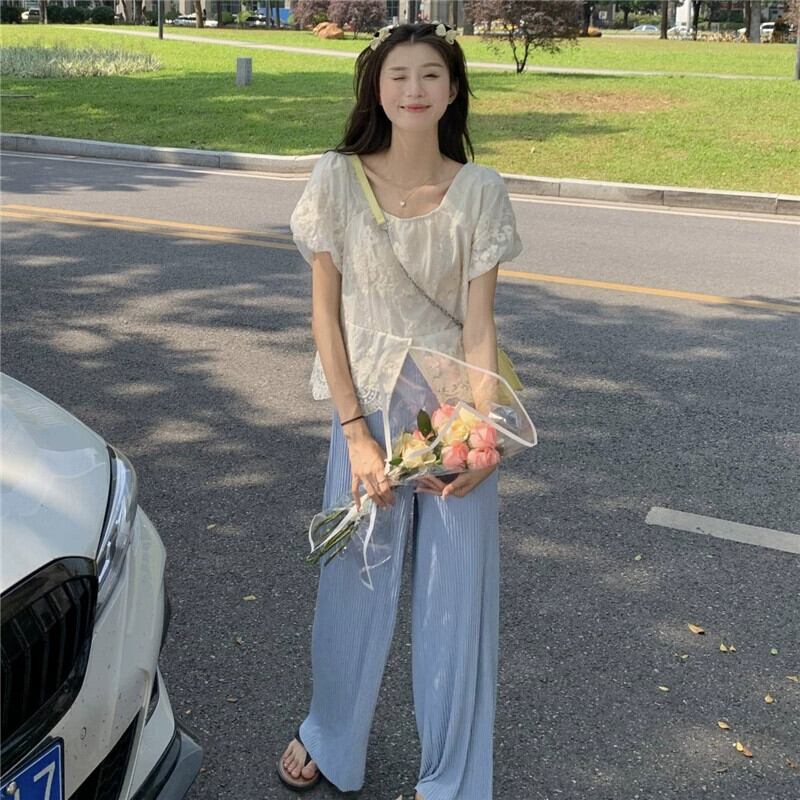 パフスリーブスクエアネックショートトップレディース夏デザインニッチ甘くて優しいスーパーフェアリー半袖レースシャツ 大人ガーリー スウィート キュート カジュアル サマー 夏物 スクウェア 8571687355847319