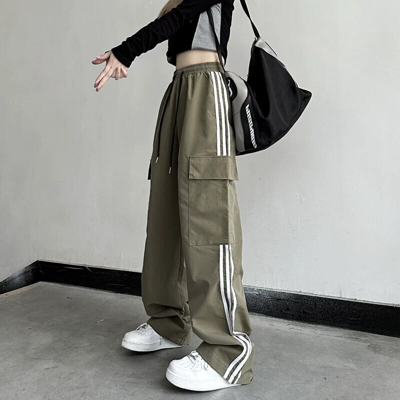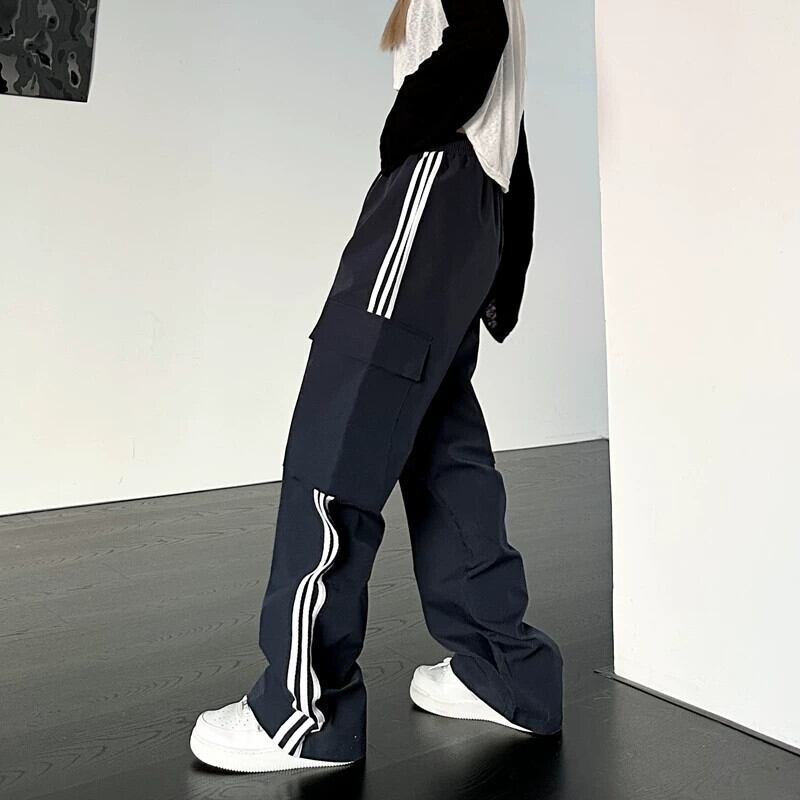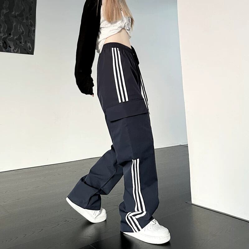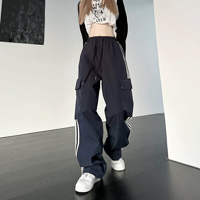 スポーツパンツレディース秋アメリカンレトロオーバーオール2023新デザインニッチルーズワイドレッグパンツ オータム 秋物 8571653070035172