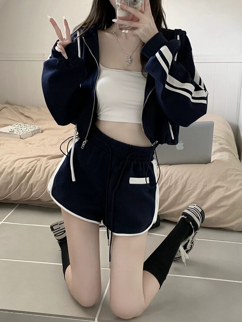 フード付きスウェットシャツカーディガンコート女性の秋薄い2023新しい小さなハイエンドスポーツショートトップ オータム 秋物 8571692149956859