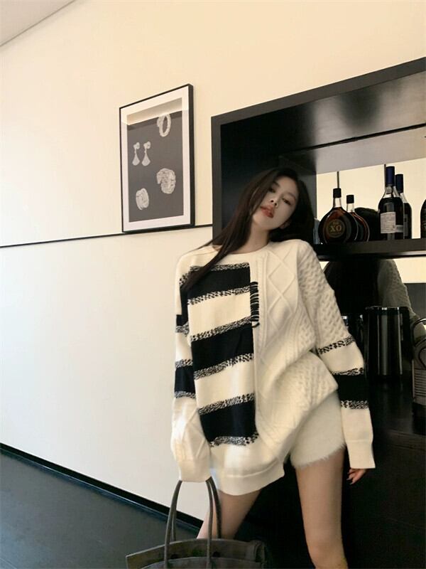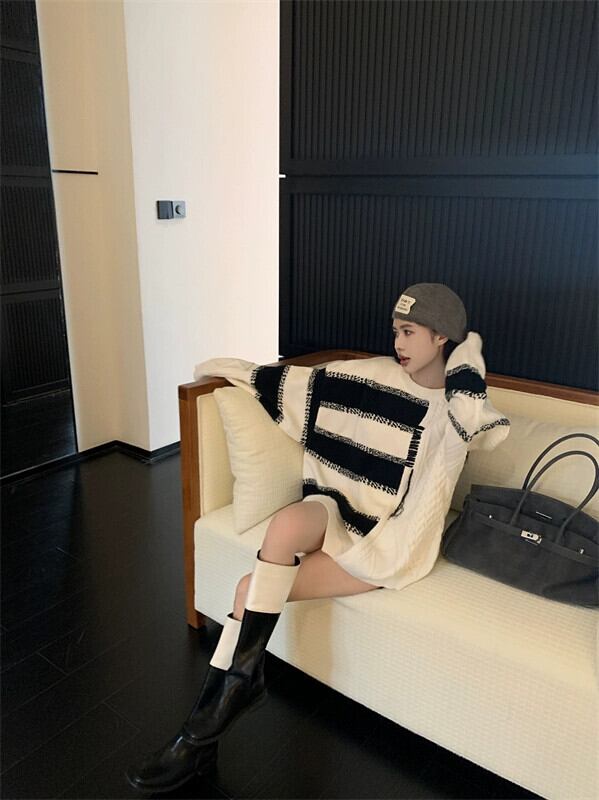 お尻をカバーするミドル丈のセーターの女性、2023年秋の新デザインニッチアメリカンシックな怠惰なスタイルのトップス オータム 秋物 8571667848085086
