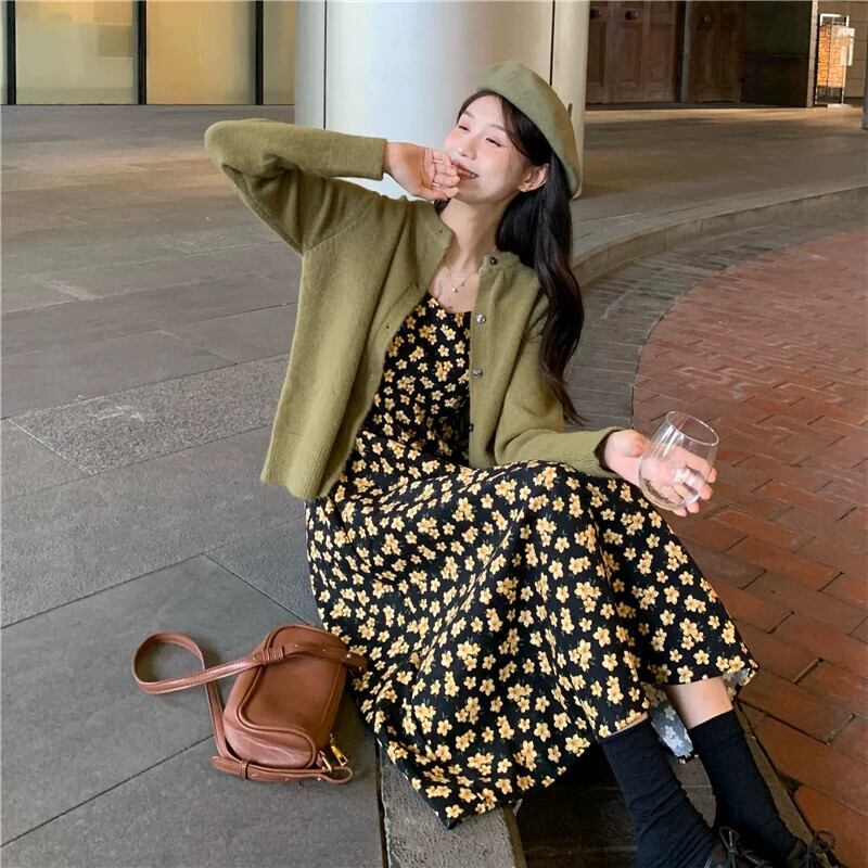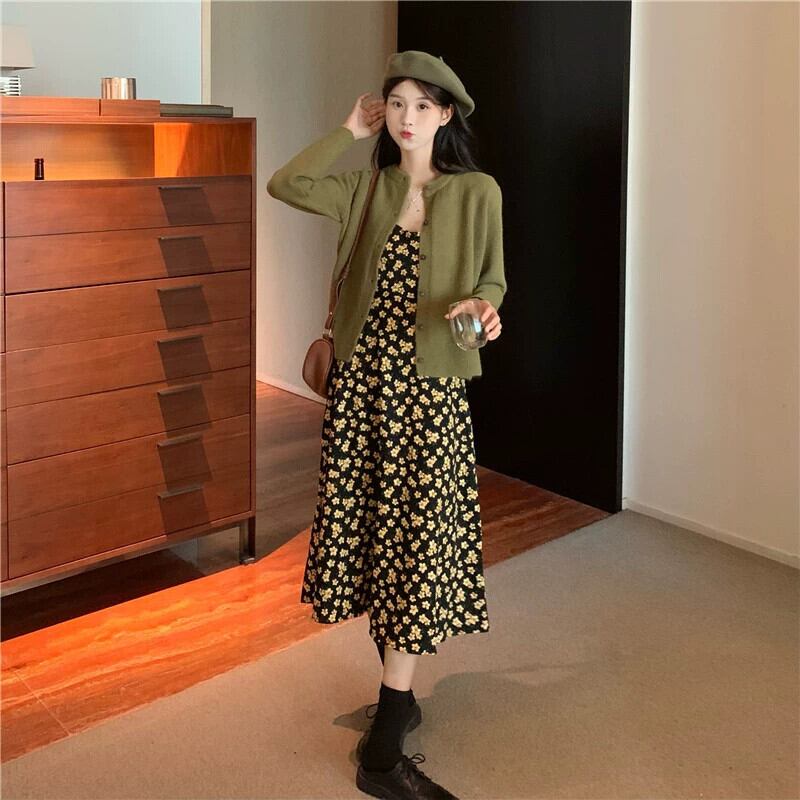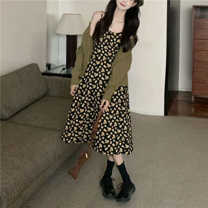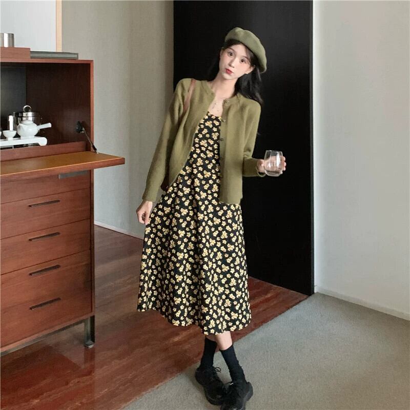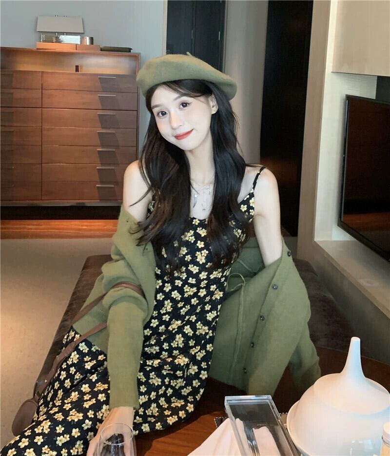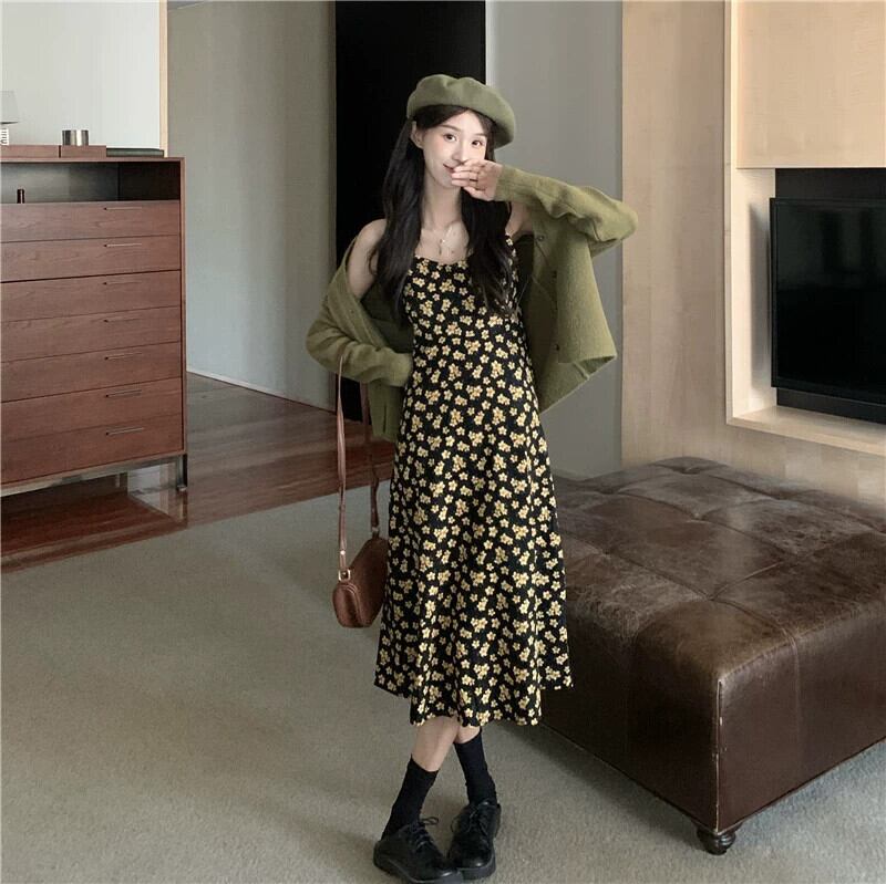 花サスペンダードレスの女性の 2023 春の新作フレンチレトロな気質のハイエンドロングスカート小人 スプリング 春物 花柄 8571645923105129