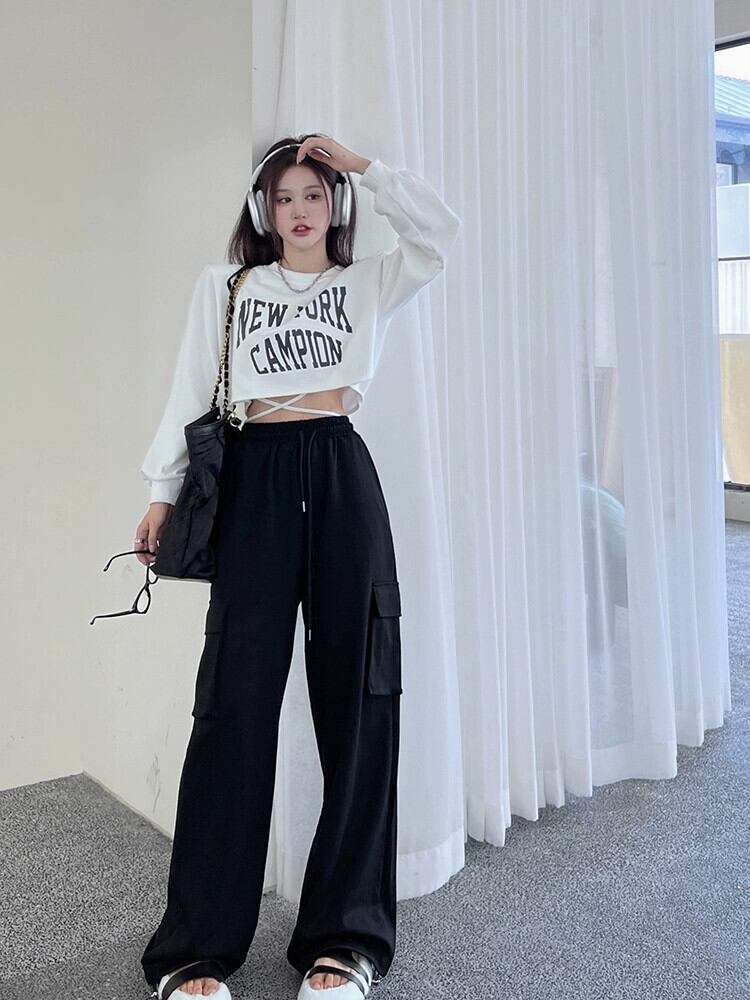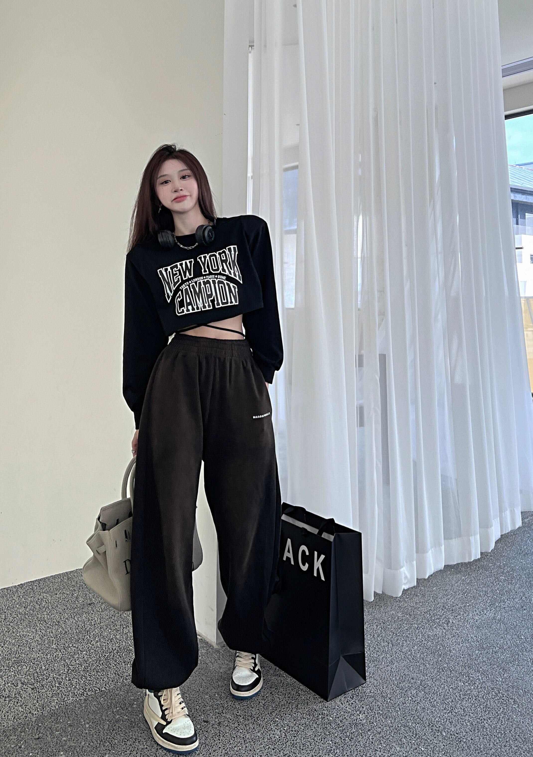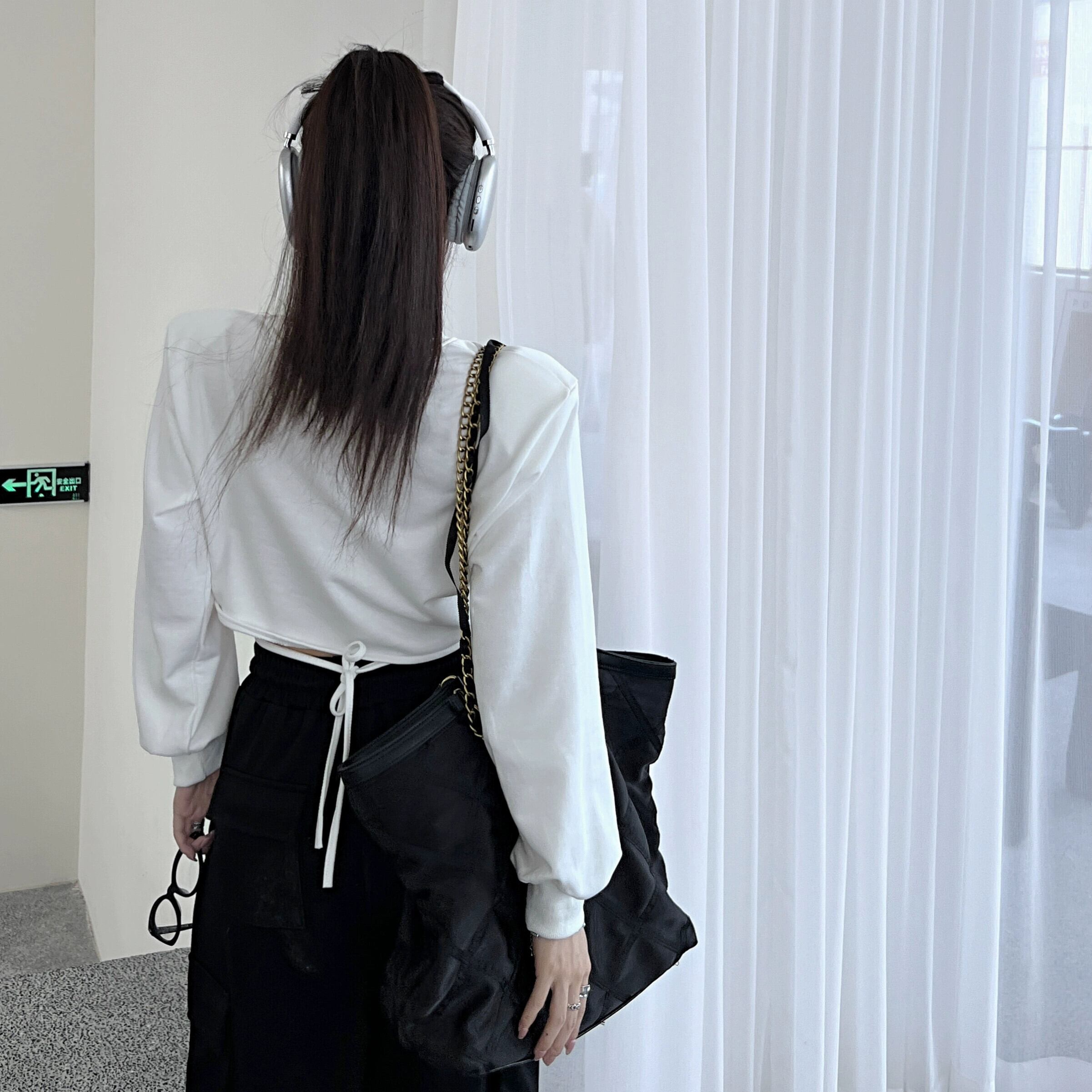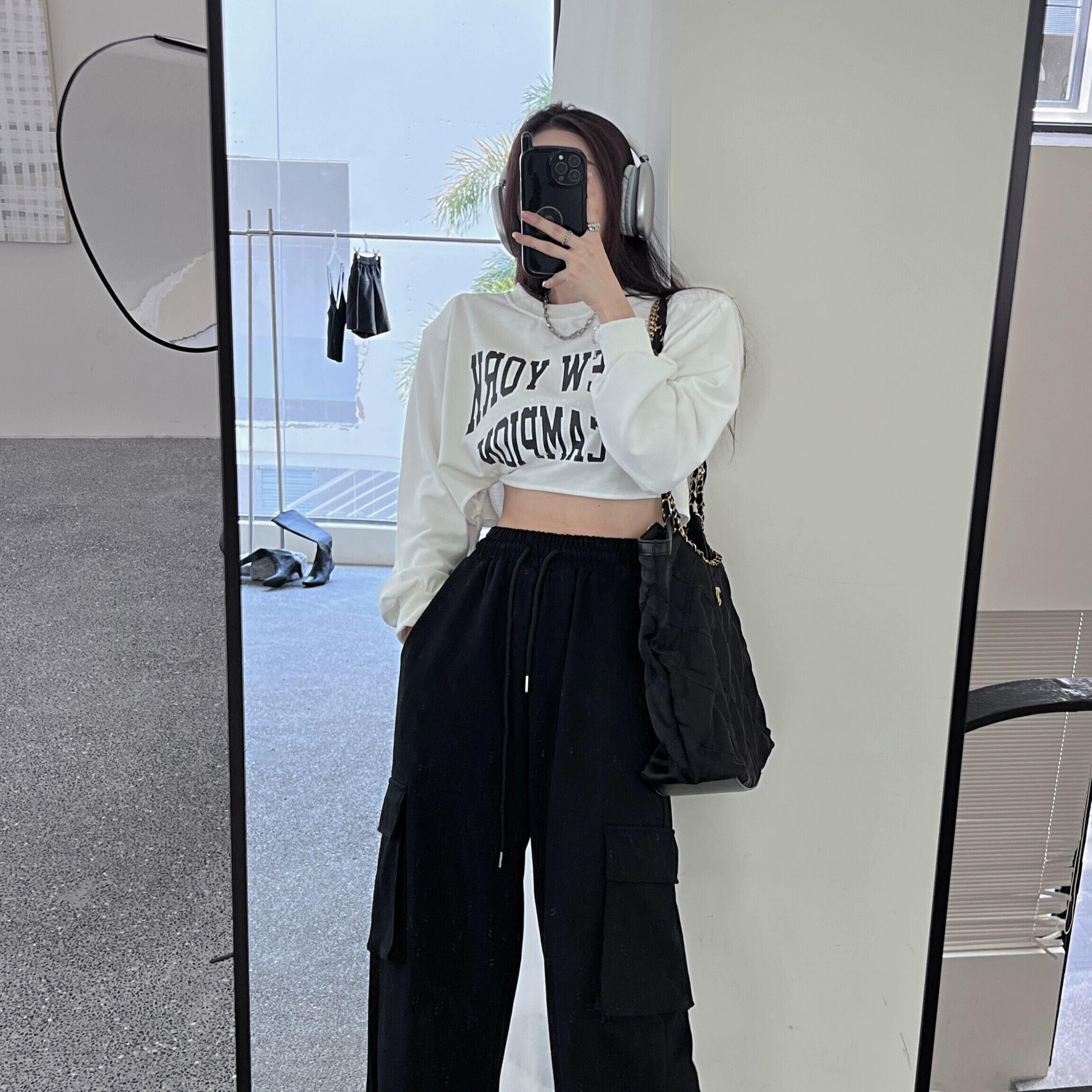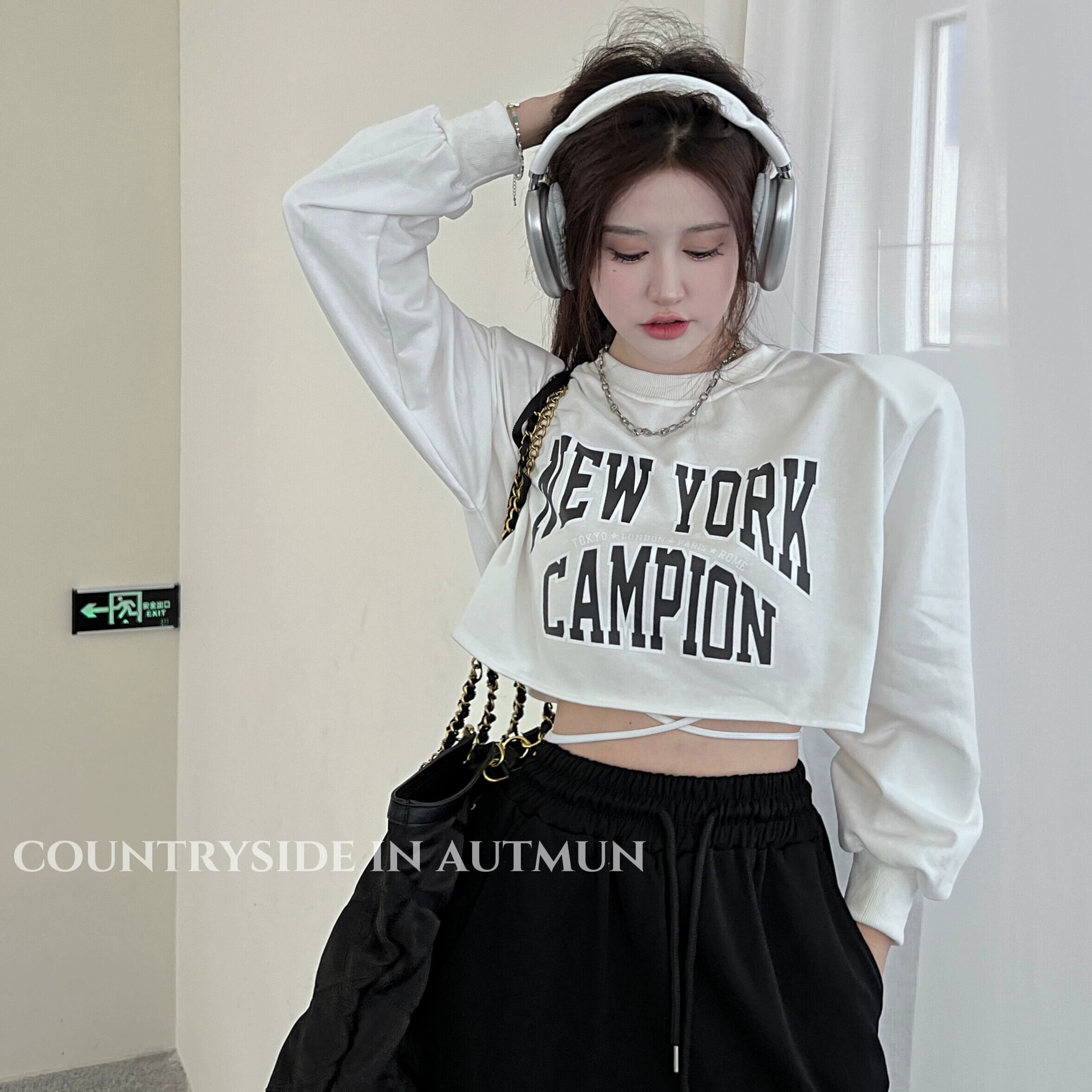 トレンディなインデザインのニッチな秋の2023新しいスタイルのプチシックな香港スタイルの長袖トップのショートスウェットシャツの女性 ロング オータム 秋物 8571654265607008