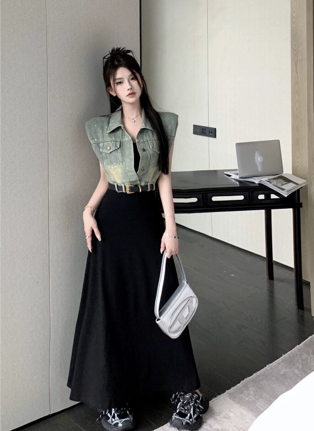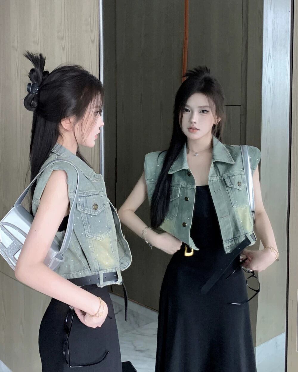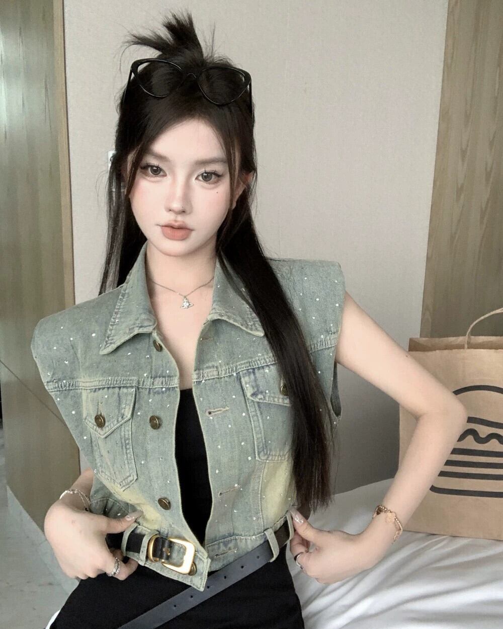 頑丈なデニムベストジャケット女性の夏アウターベスト香港スタイルのレトロなマッチングドレスショートベスト サマー 夏物 8571625179489706