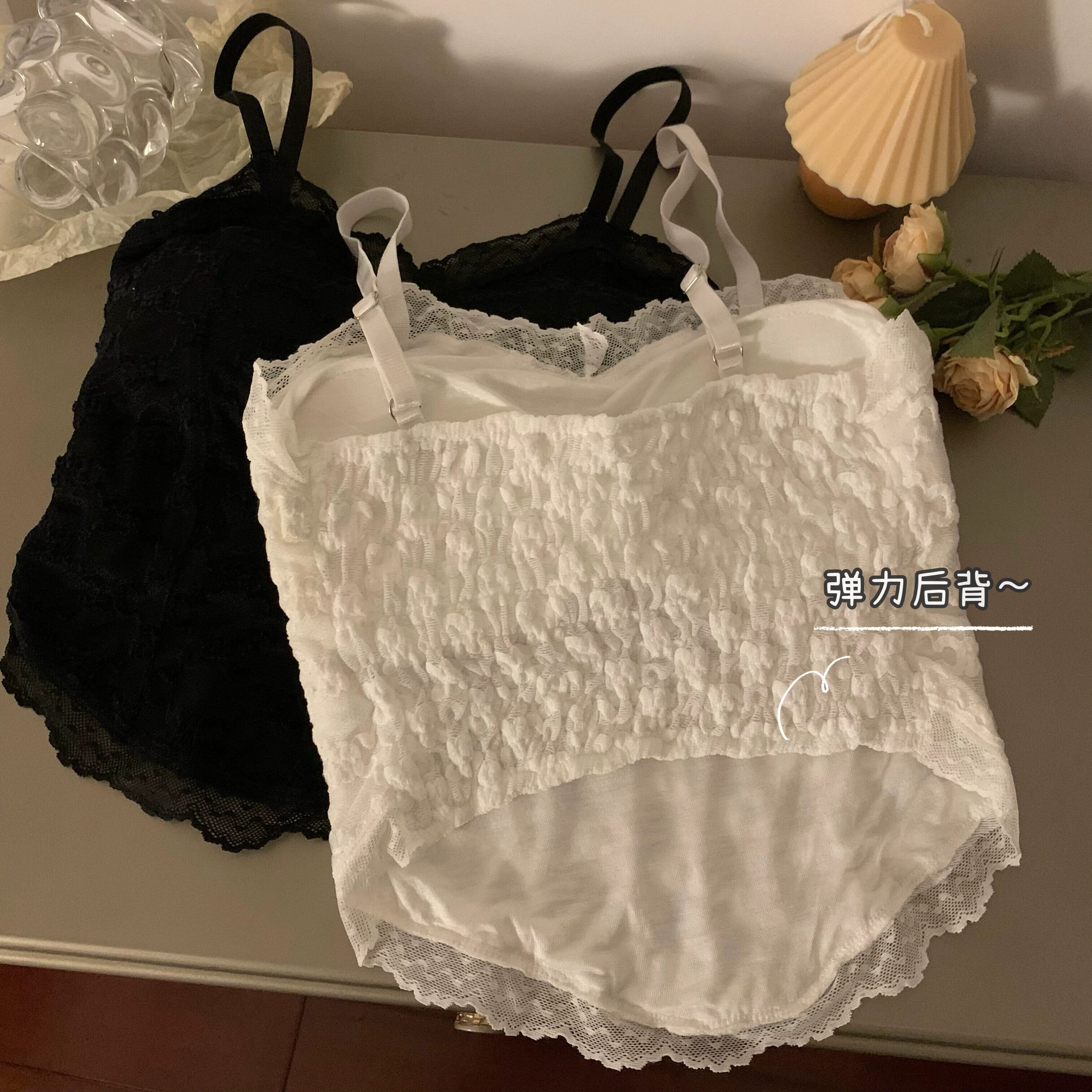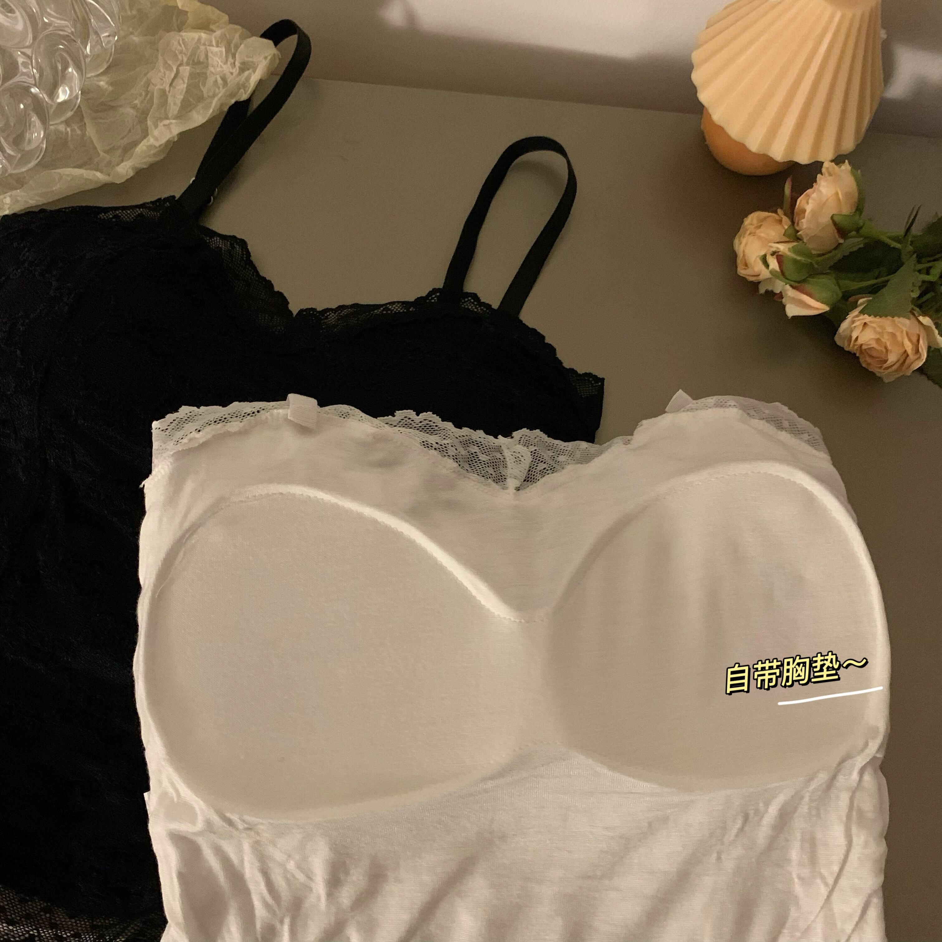 ホワイトレースキャミソール レディース 夏インナー 胸パッド付き 美背中下着 チューブトップ サマー 夏物 8571699059820266