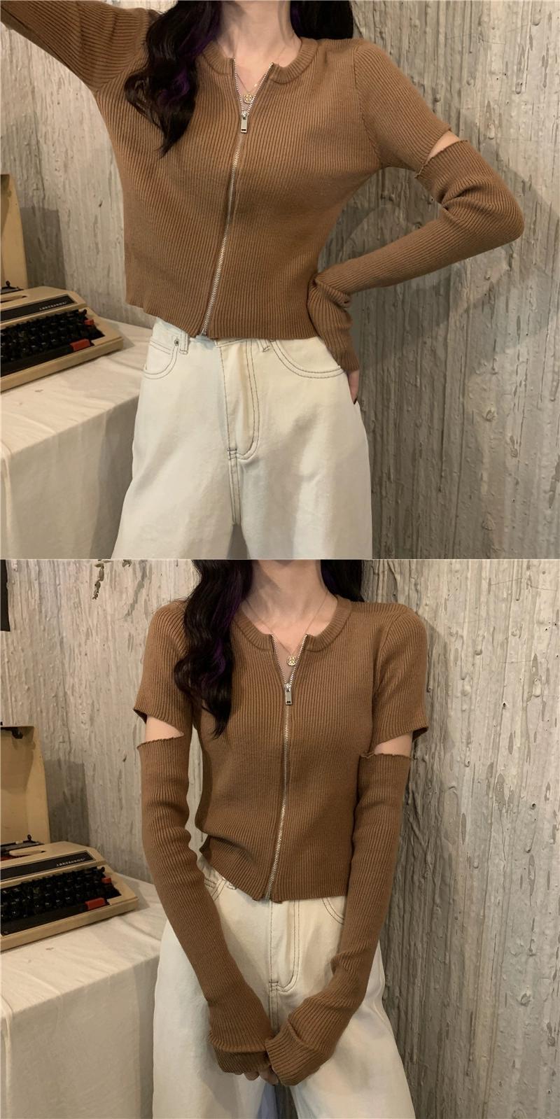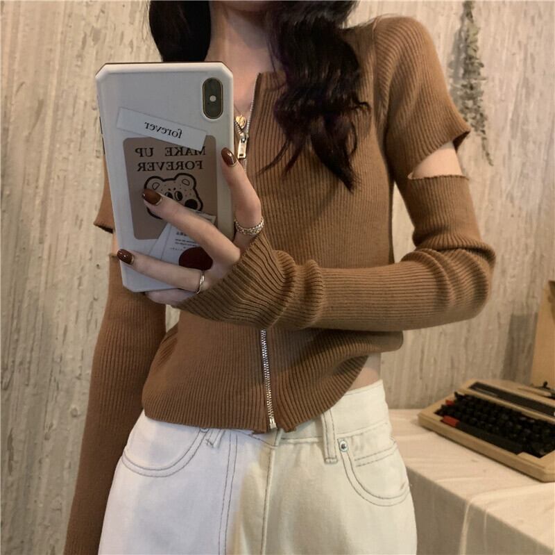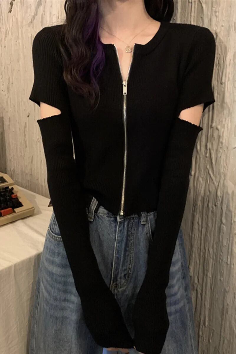 黒のニットカーディガンレディース秋ショートコートデザインニッチユニークな甘い長袖トップ ロング ブラック 大人ガーリー スウィート キュート カジュアル オータム 秋物 8571626089559924