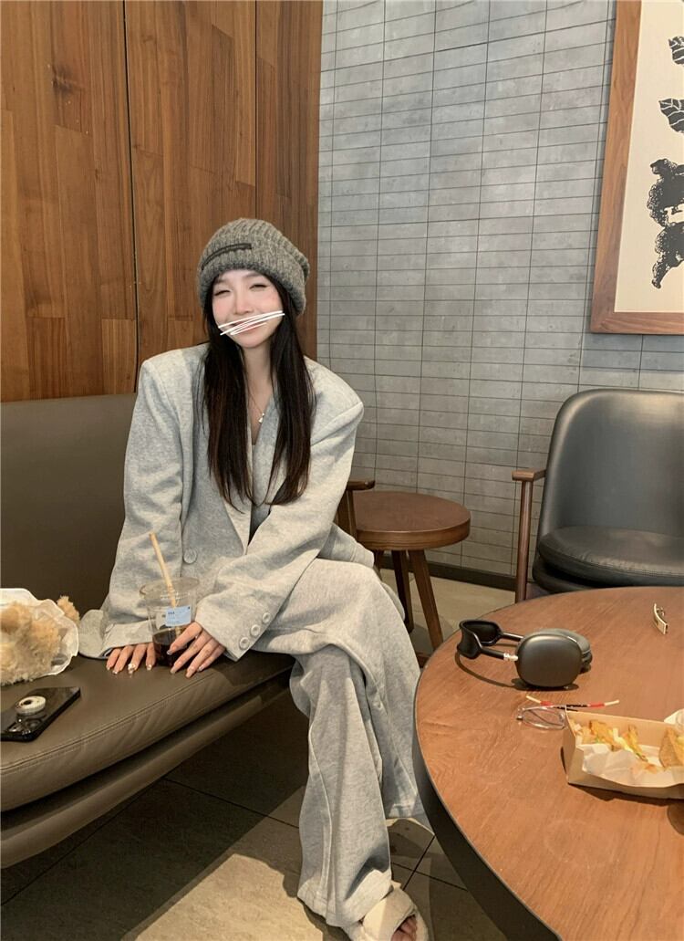 グレースーツジャケットの女性の秋 2023 新しいハイエンドデザイン小中長緩いカジュアルスーツ オータム 秋物 8571685719804823