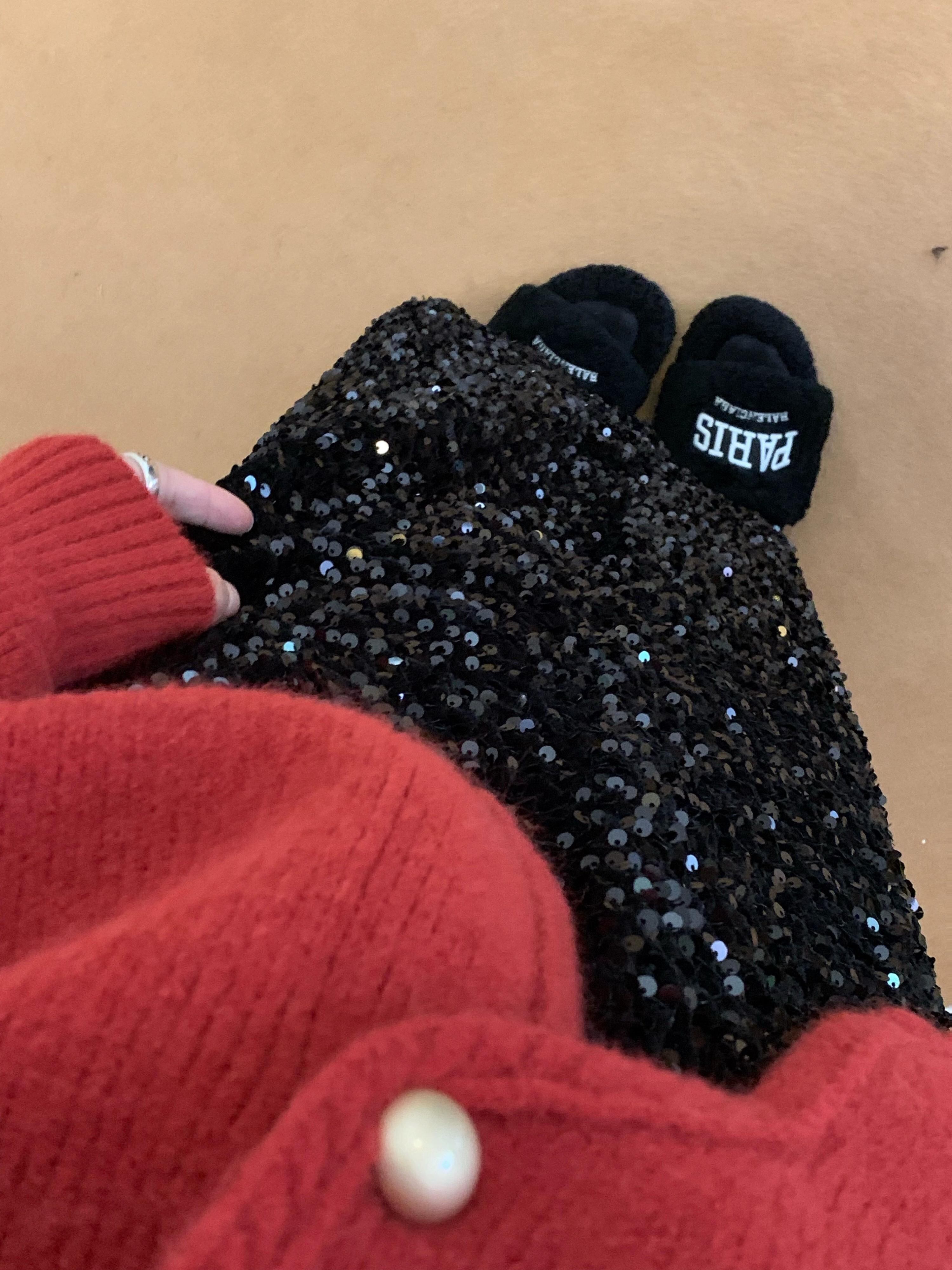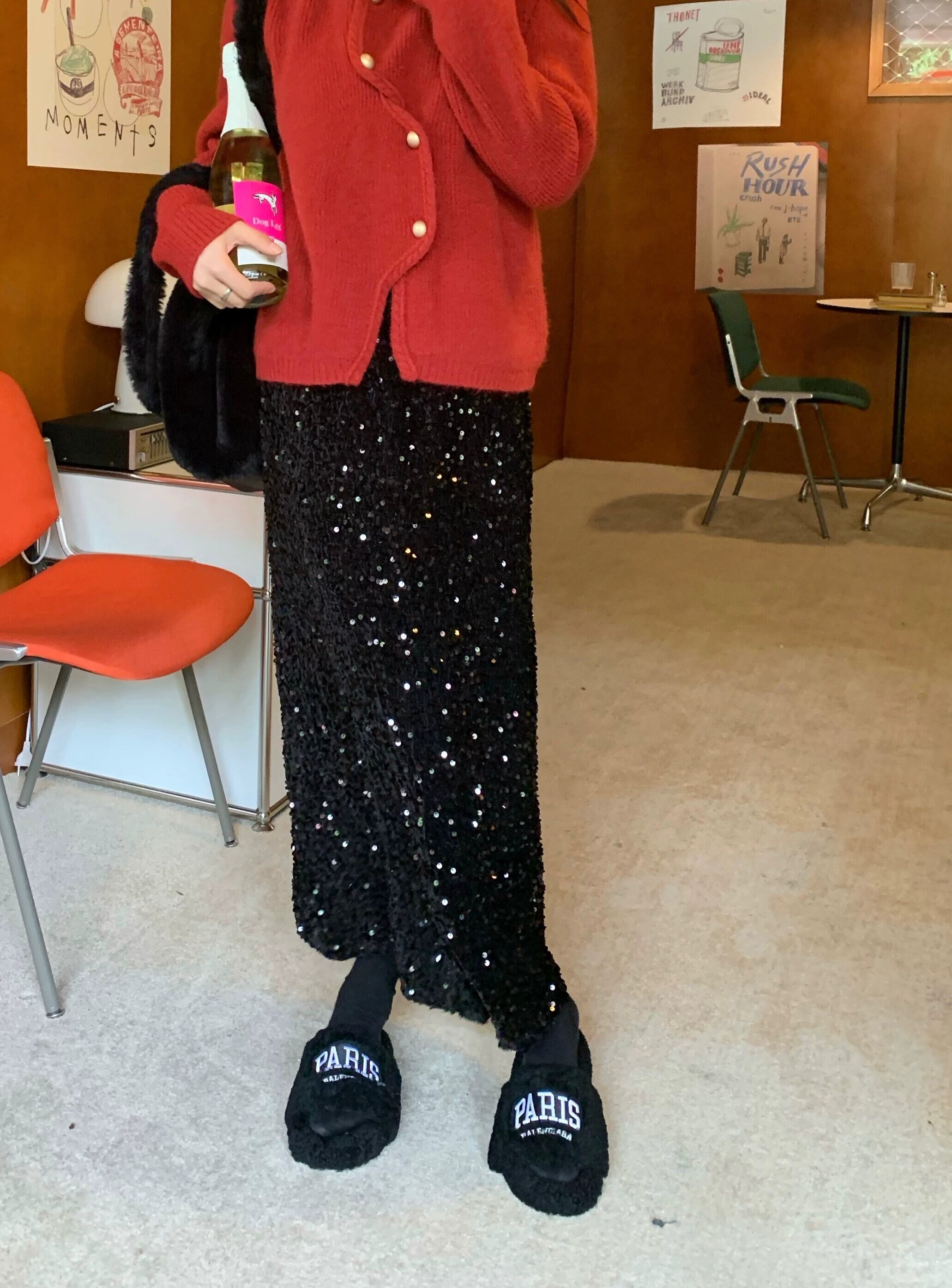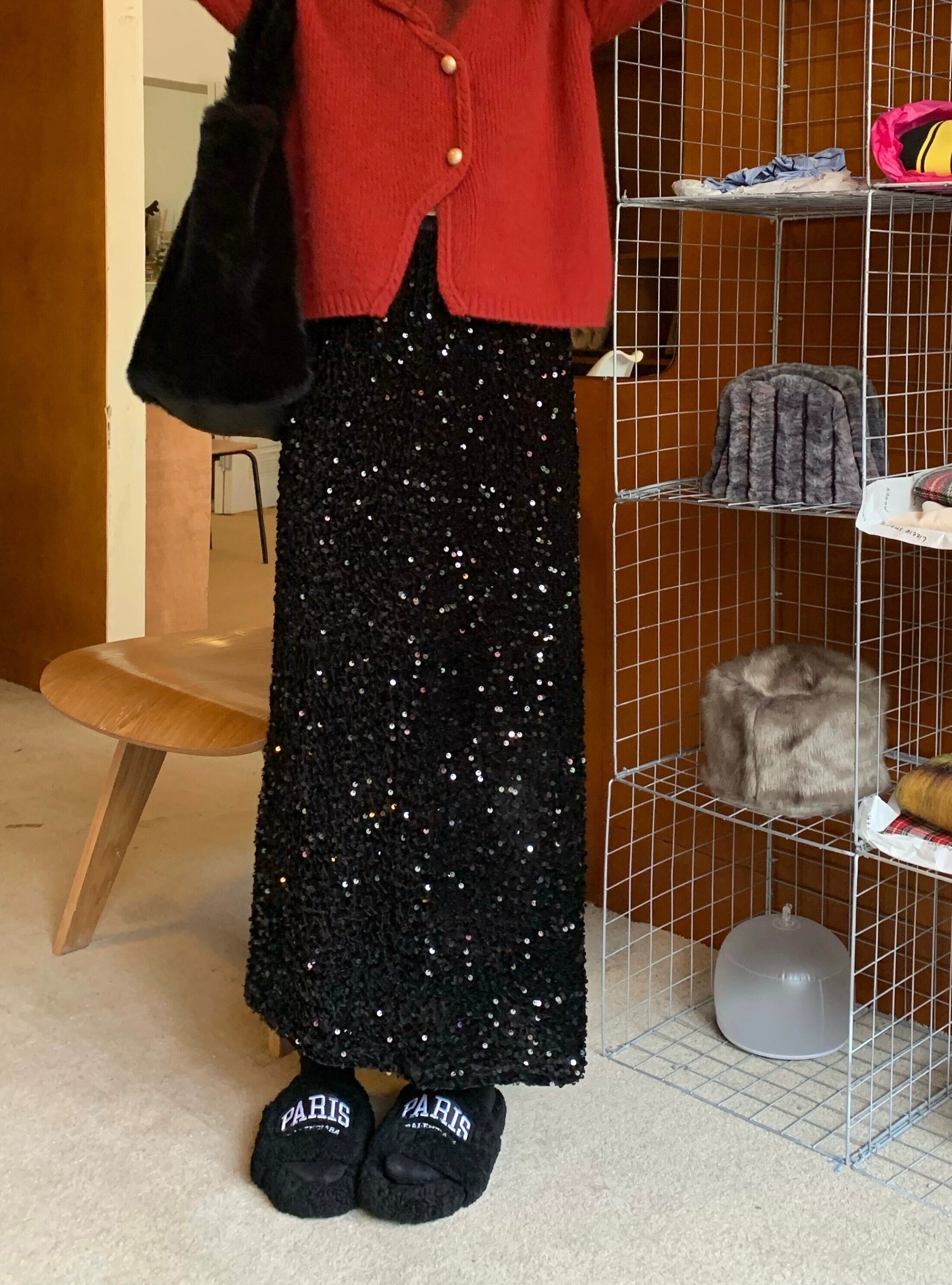 重工業スパンコールスカート女性秋と冬セーター付きワンステップスカート梨型フィギュアハイウエストミッドレングスストレートロングスカート ハイウェスト オータム 秋物 ウィンター 冬物 8571627958984069