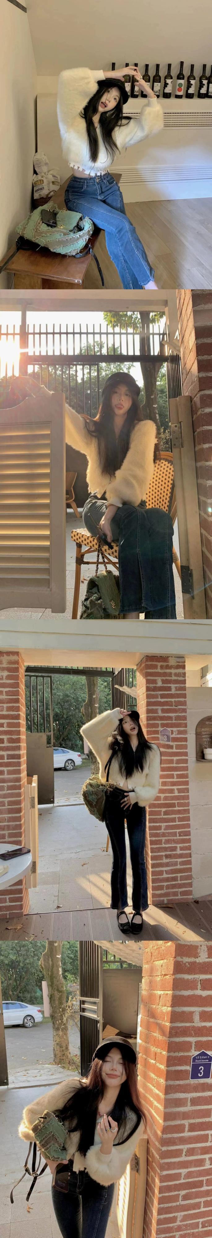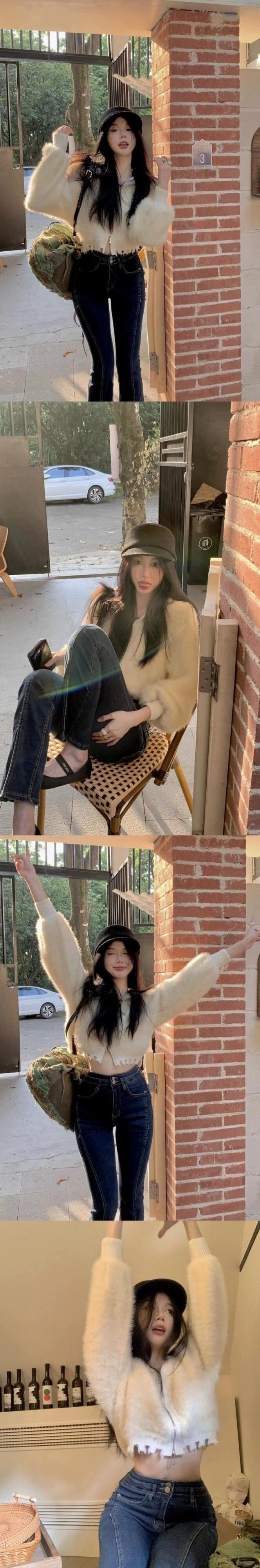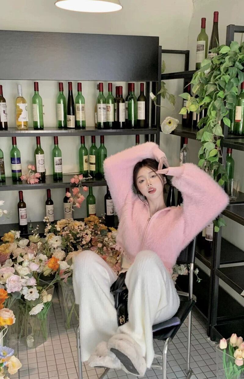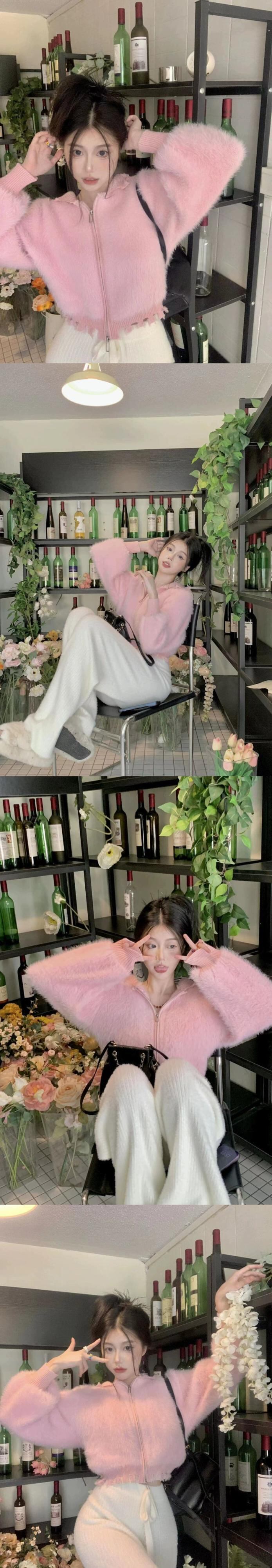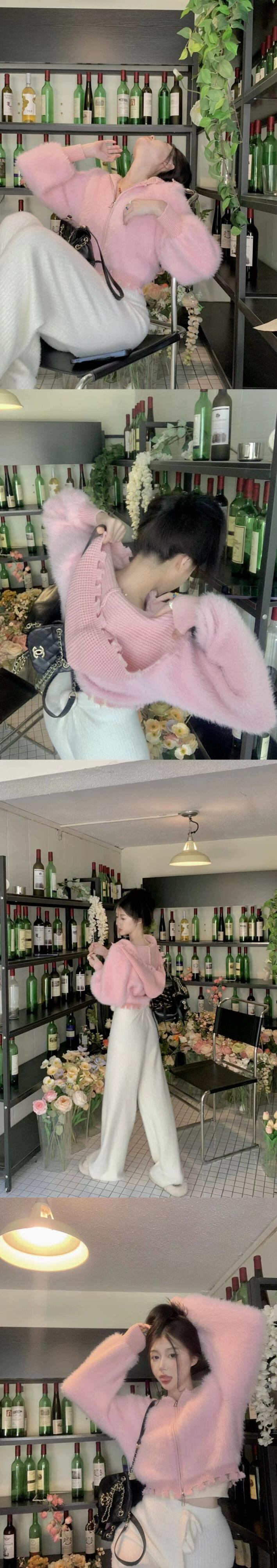 模造ミンクベルベットジッパーセータージャケット女性 2023 春の新ニッチデザインピンクショートニットカーディガン スプリング 春物 8571612595285009