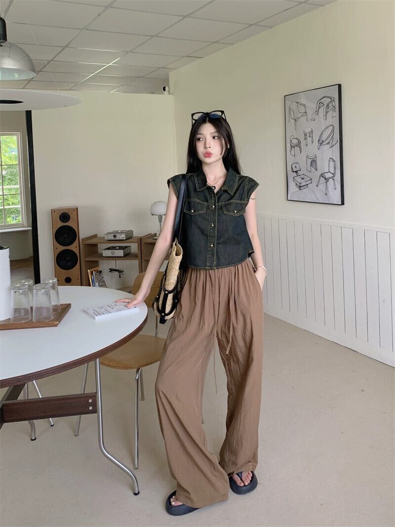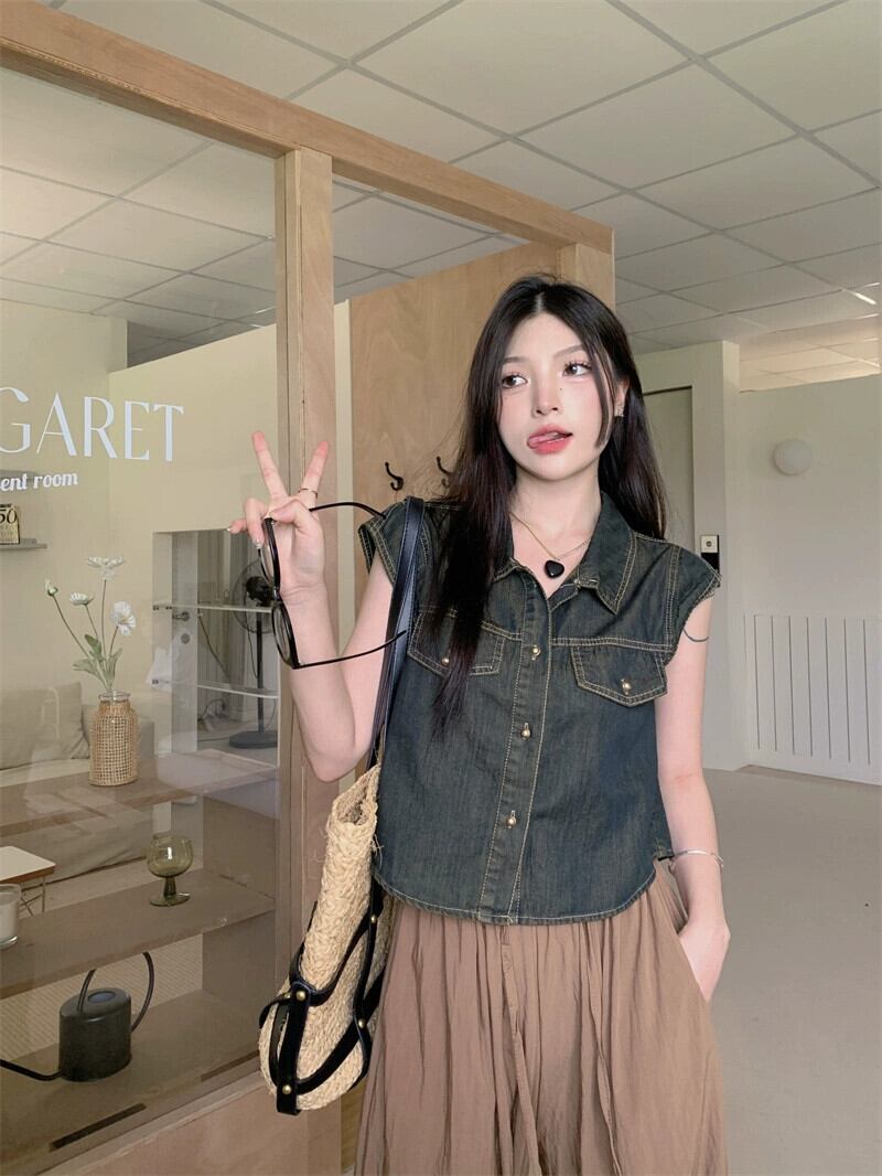 Feifei スリーブデニムシャツ女性の夏の 2023 新しい香港スタイルのレトロシックなシックな小さなショートトップ サマー 夏物 8571617422322326