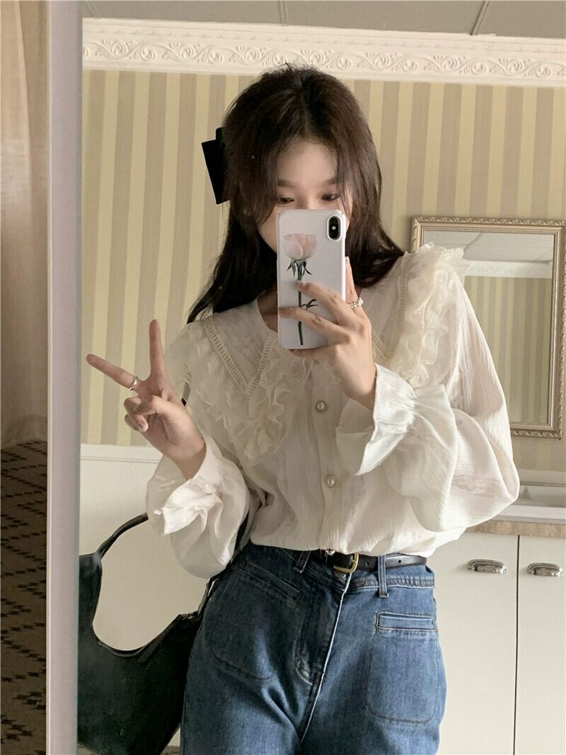アプリコット長袖シャツレディース2023秋新デザインニッチシックフレンチジェントルハイエンドトップ ロング オータム 秋物 8571615916934275