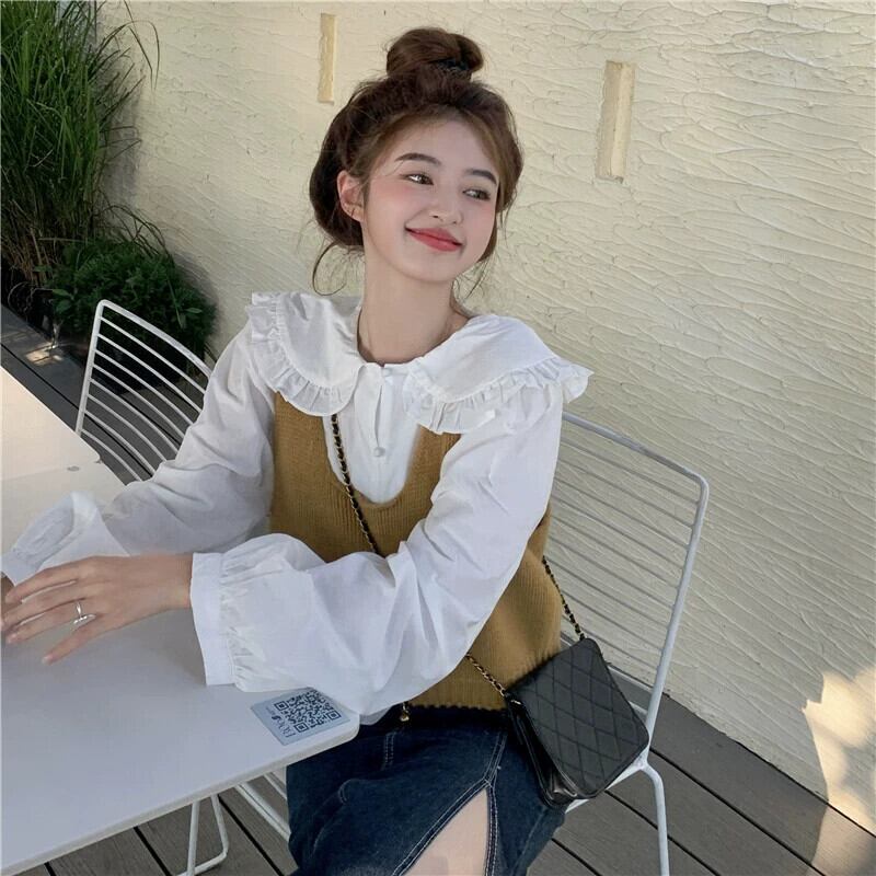 ホワイトドールカラーインナーシャツレディースデザインニッチ2023年秋新スタイルユニークでシックな長袖トップ ロング オータム 秋物 8571647683285640
