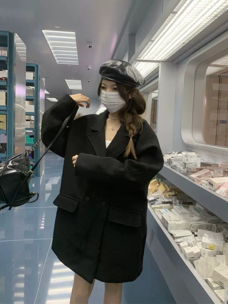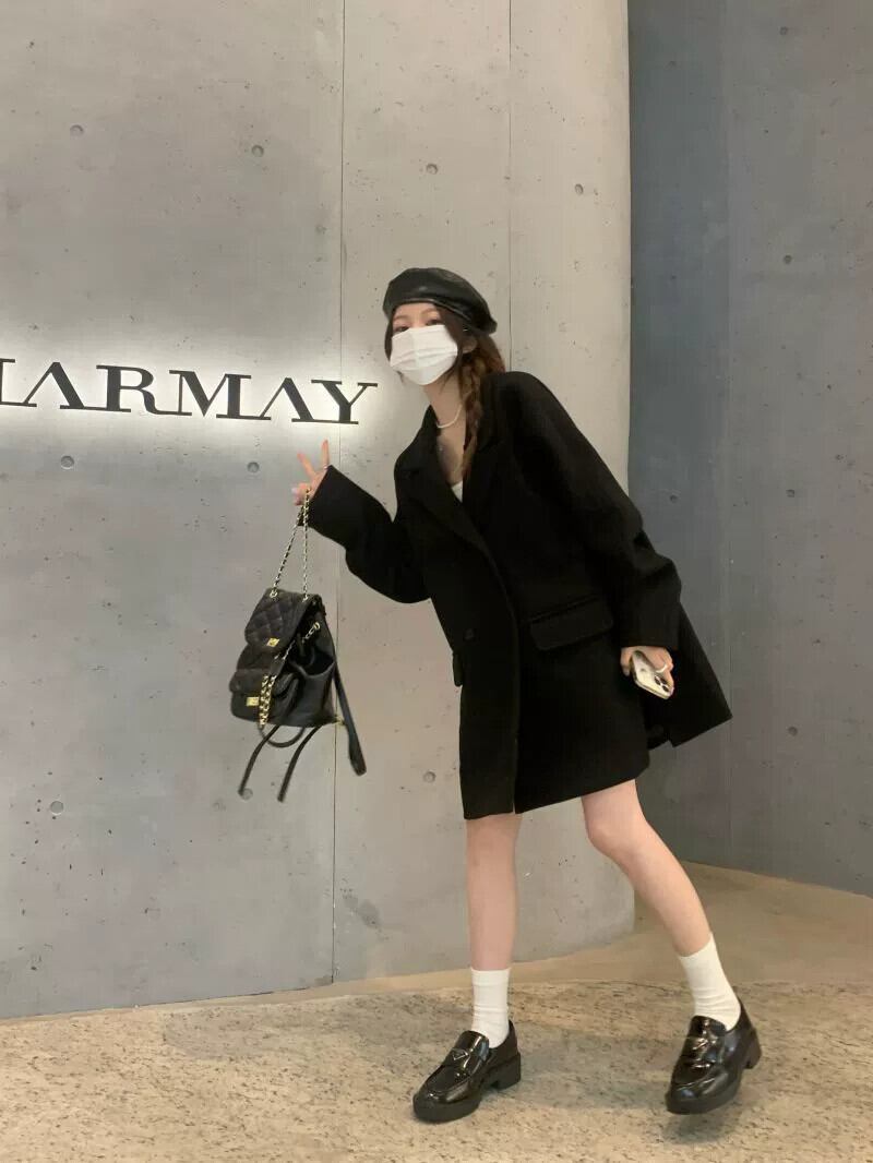 紫色のウールのスーツのジャケットの女性の秋と冬 2023 新しいインターネット有名人の小さなハイエンドミッドレングスのウールのコート オータム 秋物 ウィンター 冬物 パープル 8571687324882581