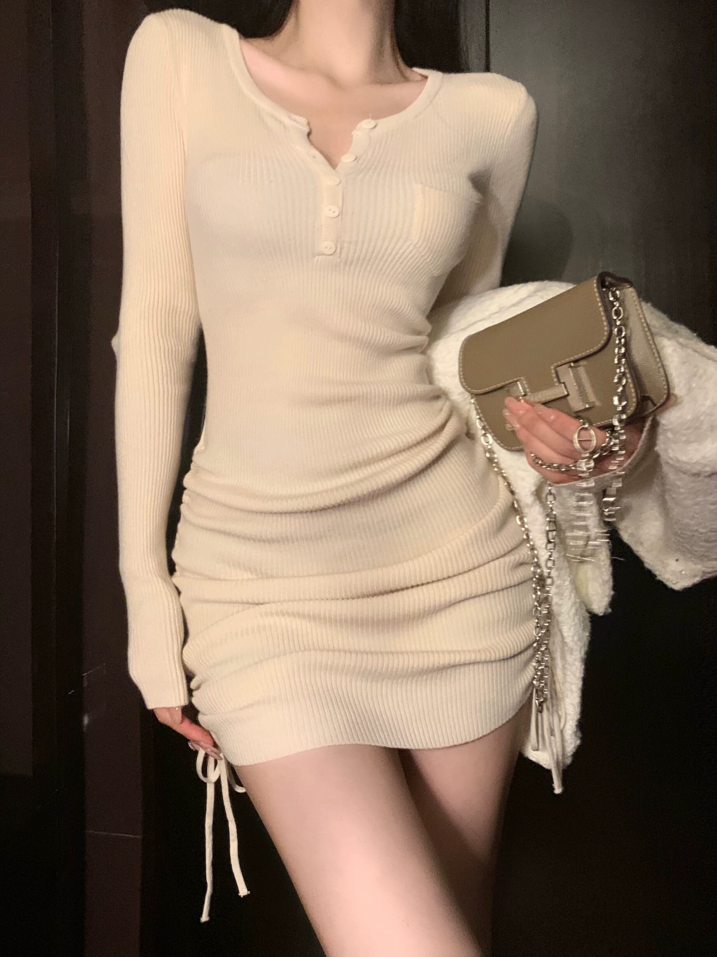 ニットボトリングドレス女性の秋 2023 新しい純粋な欲望セクシーなセクシーなスリム小さなお尻をカバーするスカート オータム 秋物 ピュア 8571672916522529