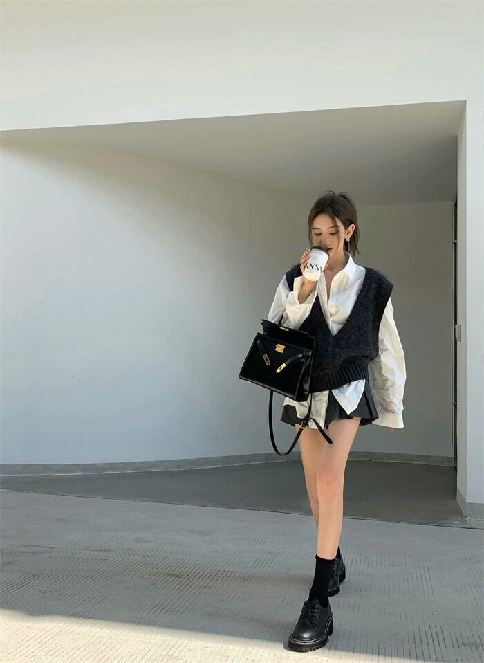 Vネックニットセーターベストレディース秋シャツアウターノースリーブベストハイエンドフレンチレトロベスト オータム 秋物 8571673308078741