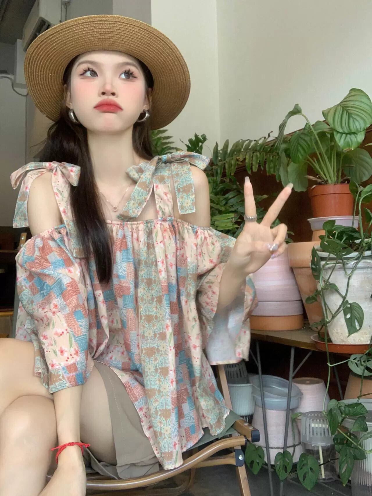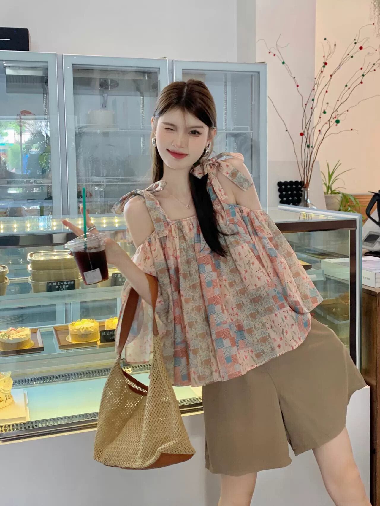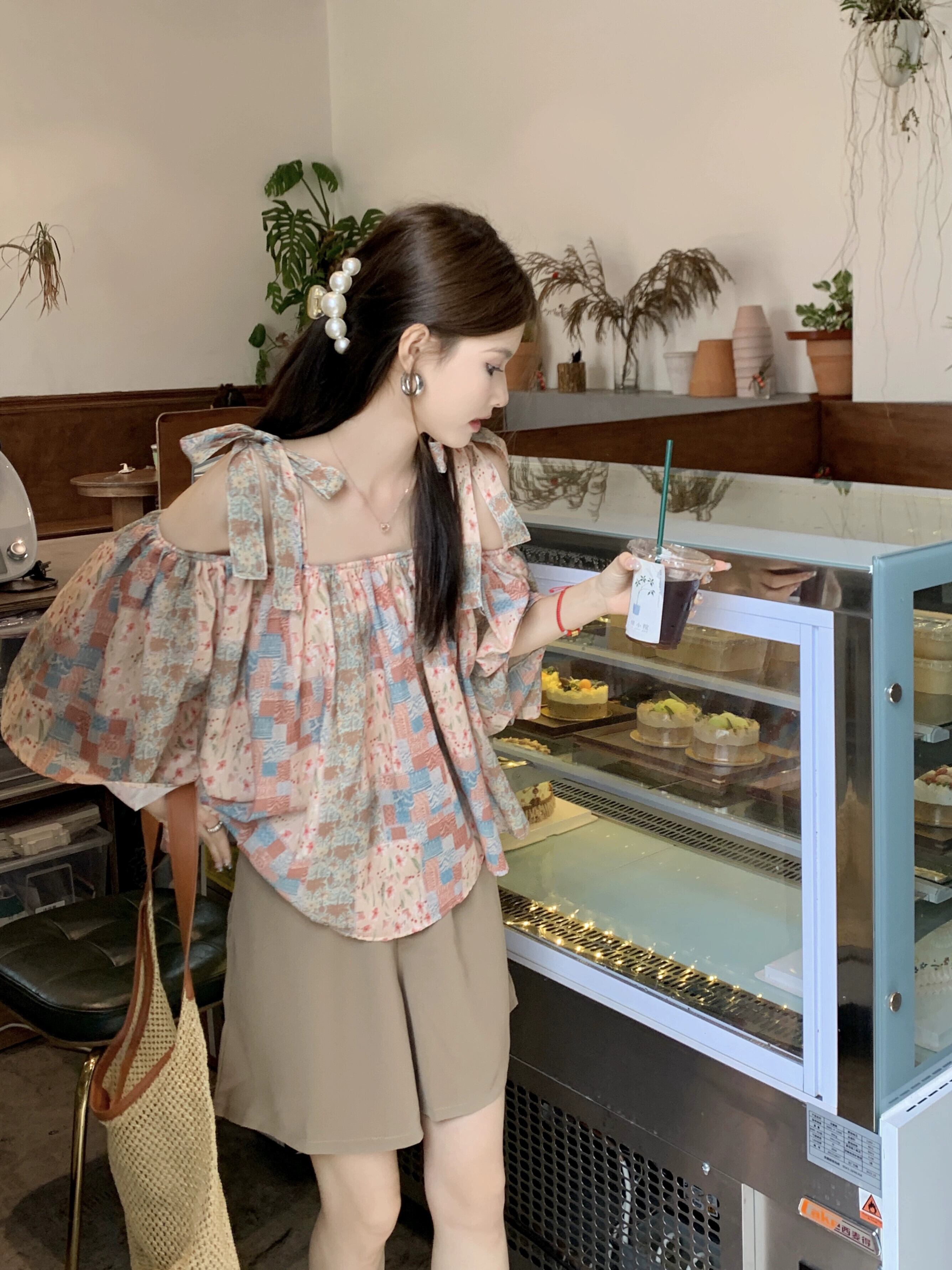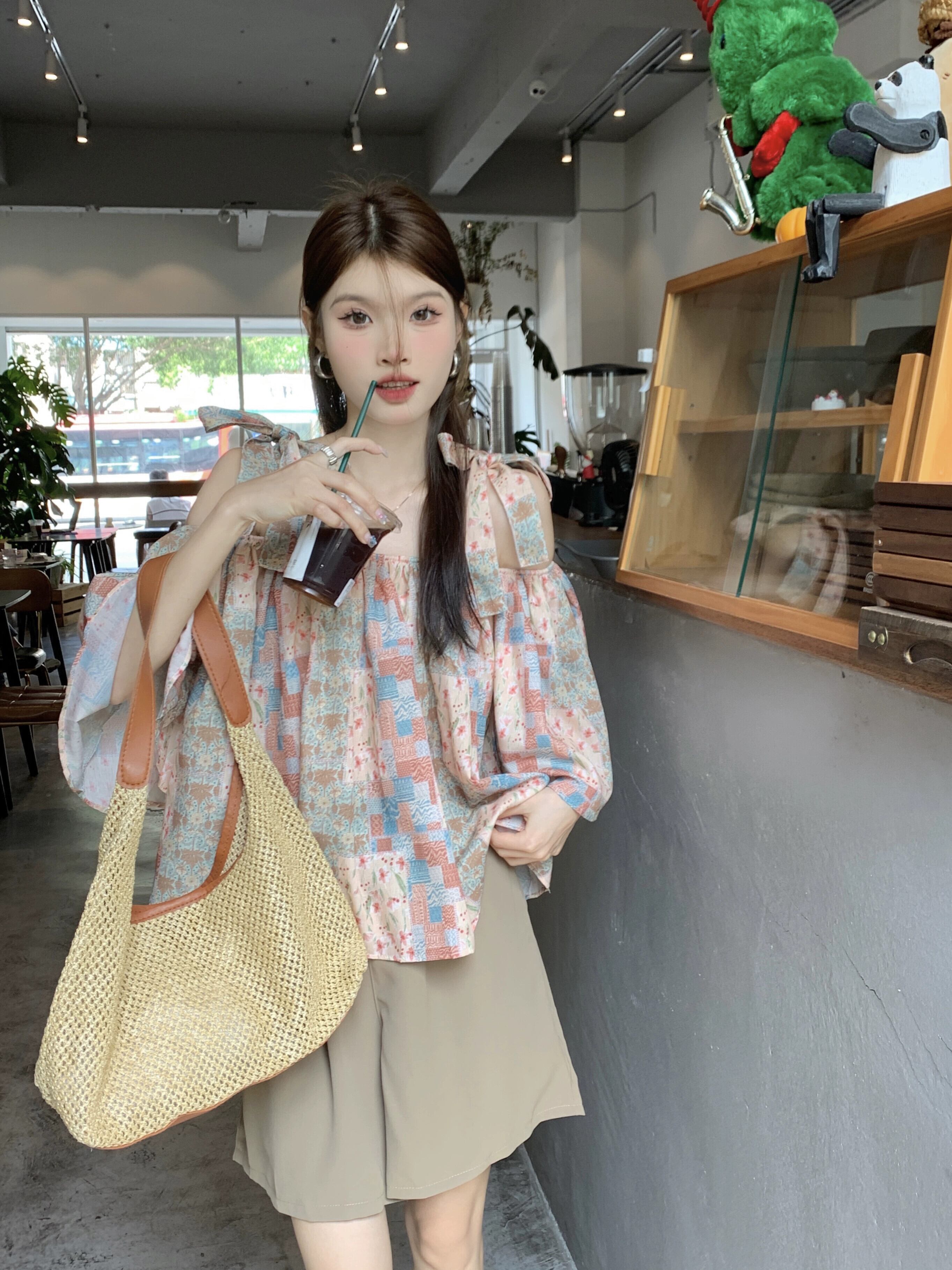 ワンショルダー ホルター トップ レディース 夏デザイン ニッチ フレンチ レトロ美しい半袖花柄シャツ サマー 夏物 8571641735991280