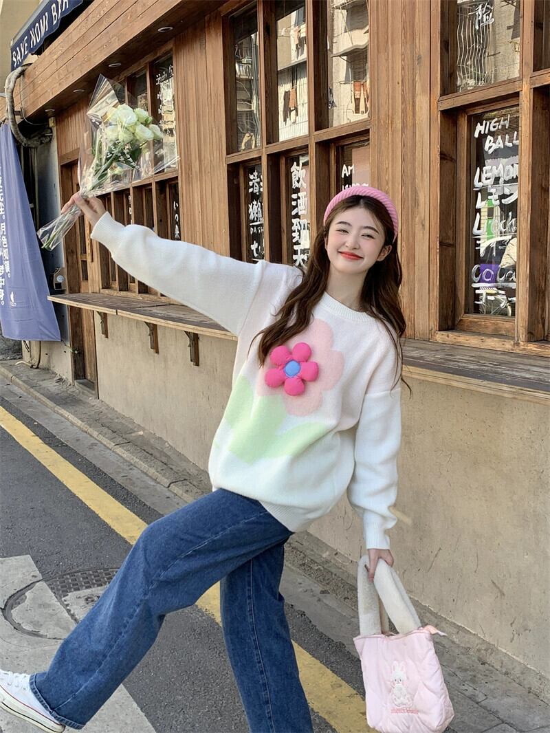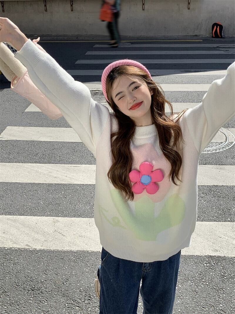 ミルクフフセーター女性の秋と冬厚みのある2023新しいアート生乳甘いルーズシックなセーター 大人ガーリー スウィート キュート カジュアル オータム 秋物 ウィンター 冬物 8571669773271808