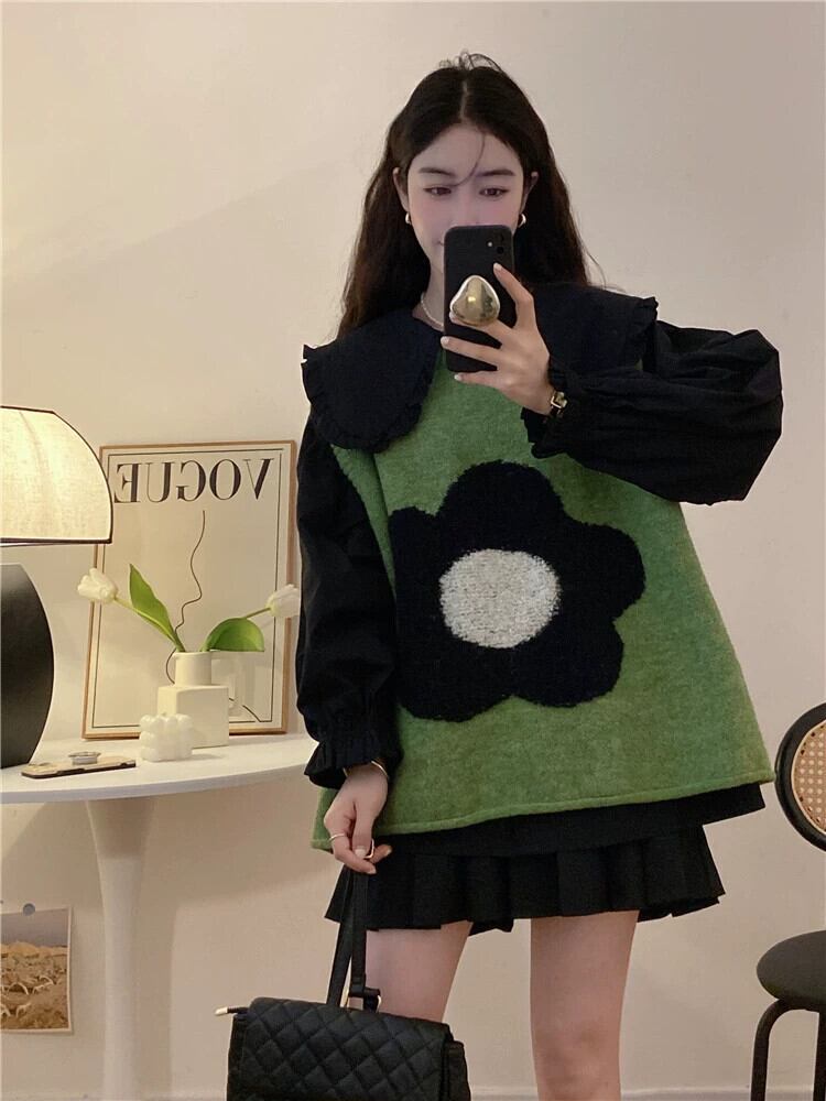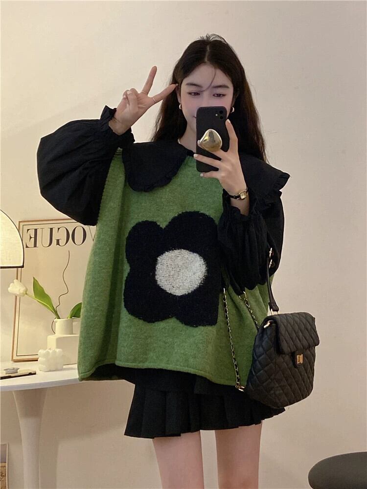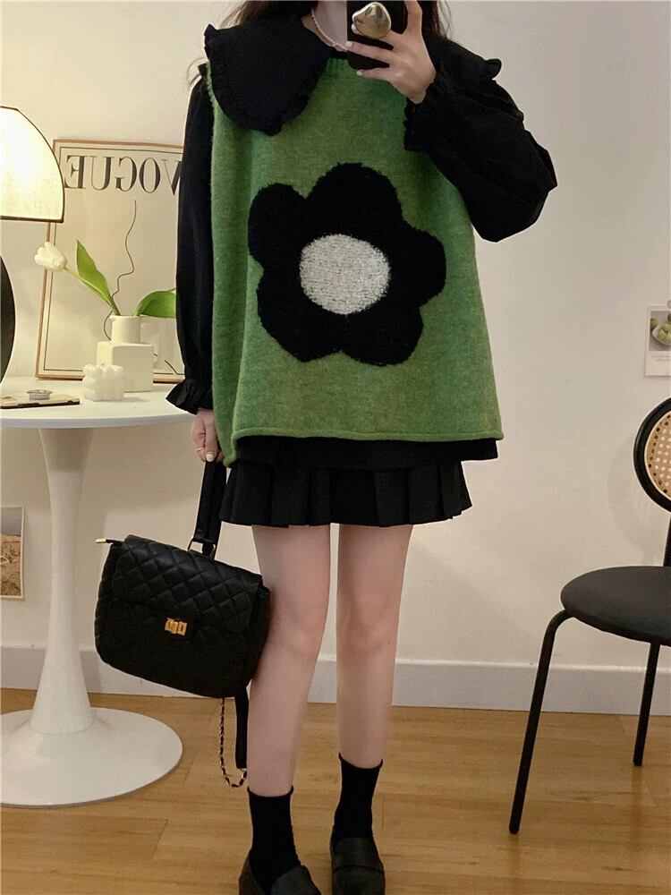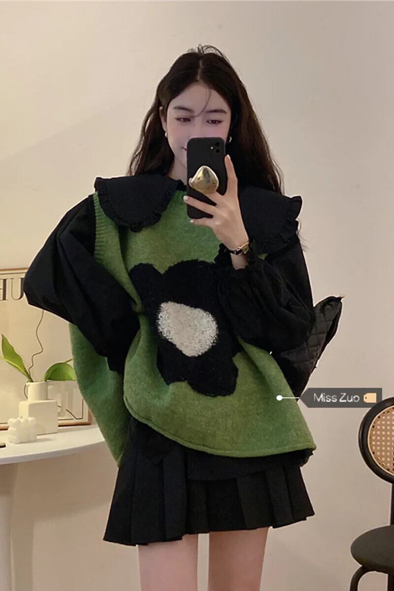 グリーンのニットセーターベストの女性、ゆったりとした怠惰なスタイル、秋のアウターレイヤリングベスト、インターネットセレブのノースリーブチョッキベスト オータム 秋物 8571612261624306