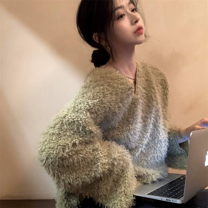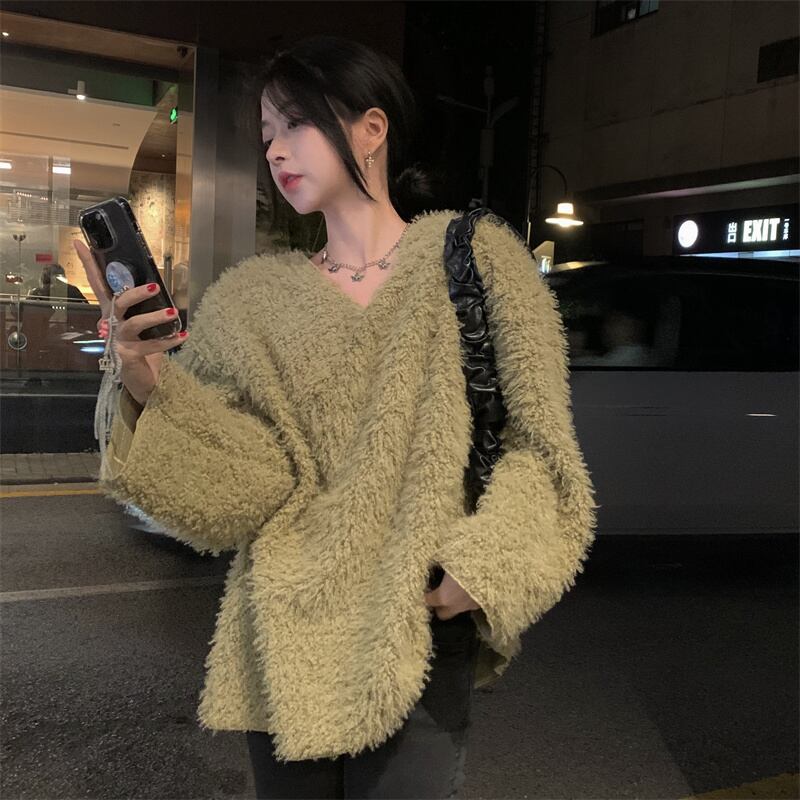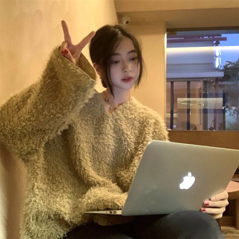 豪華な V ネックスウェットシャツの女性のデザインニッチ秋冬 2023 新しいスタイルの小さな怠惰なスタイルのシックなトップ オータム 秋物 ウィンター 冬物 Vネック 8571687883963693