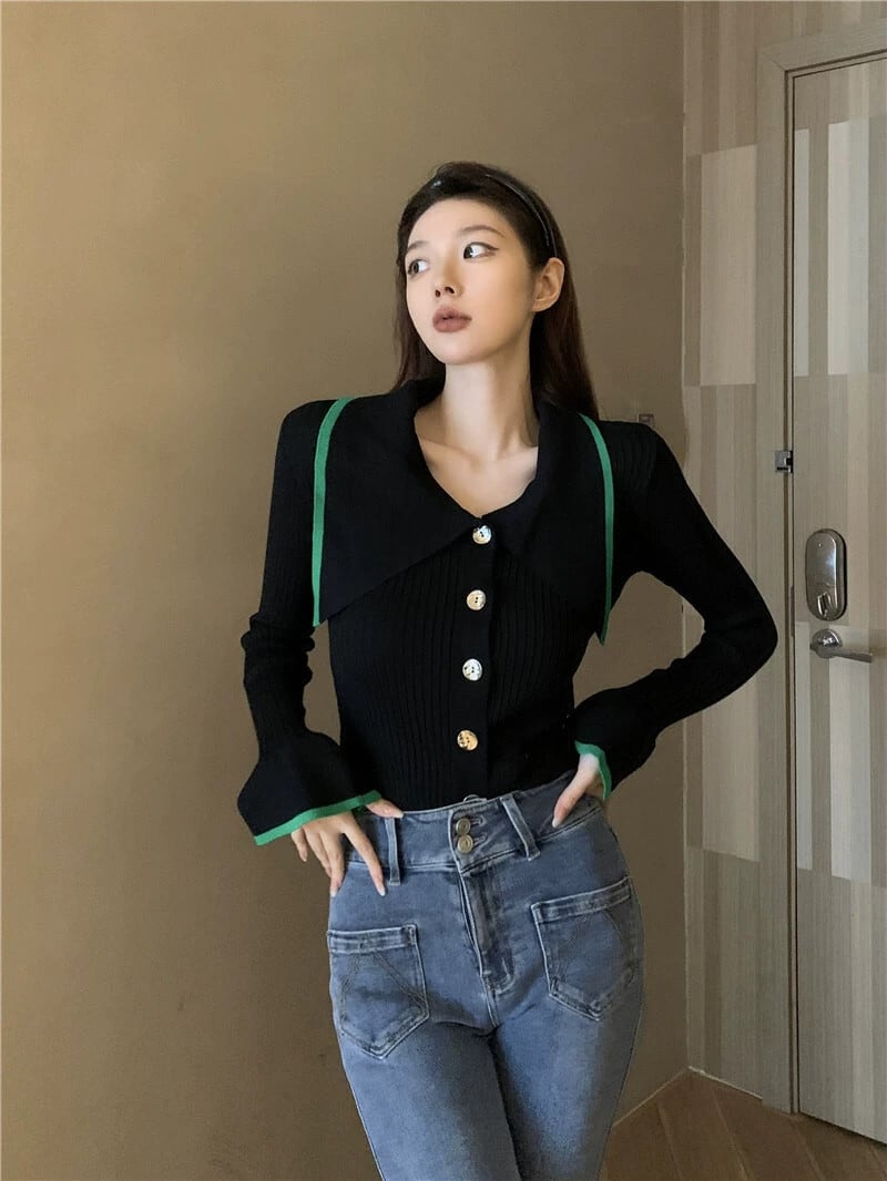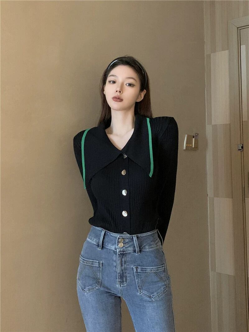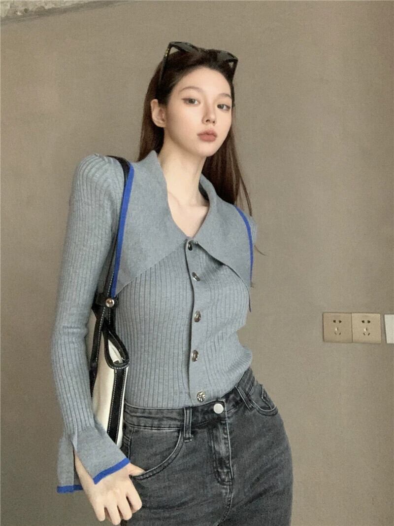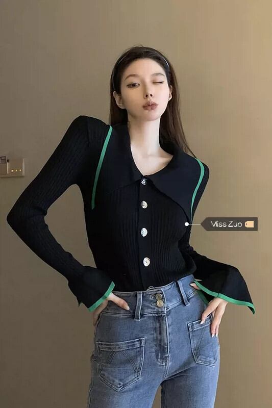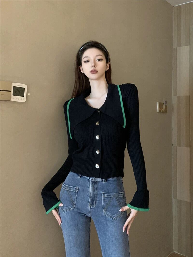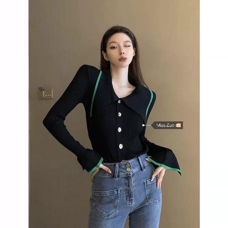 黒のニットカーディガン女性の秋冬デザインニッチ2023新しいスリムフィットインナー長袖トップ ロング ブラック オータム 秋物 ウィンター 冬物 8571634427106758