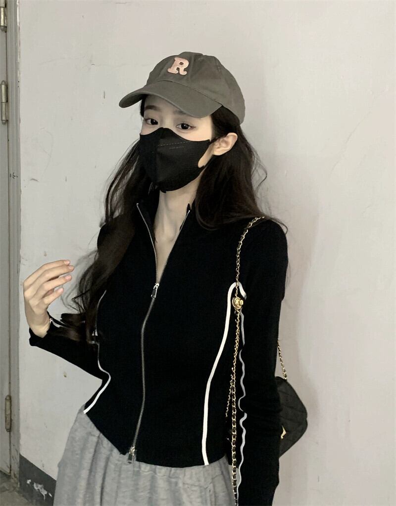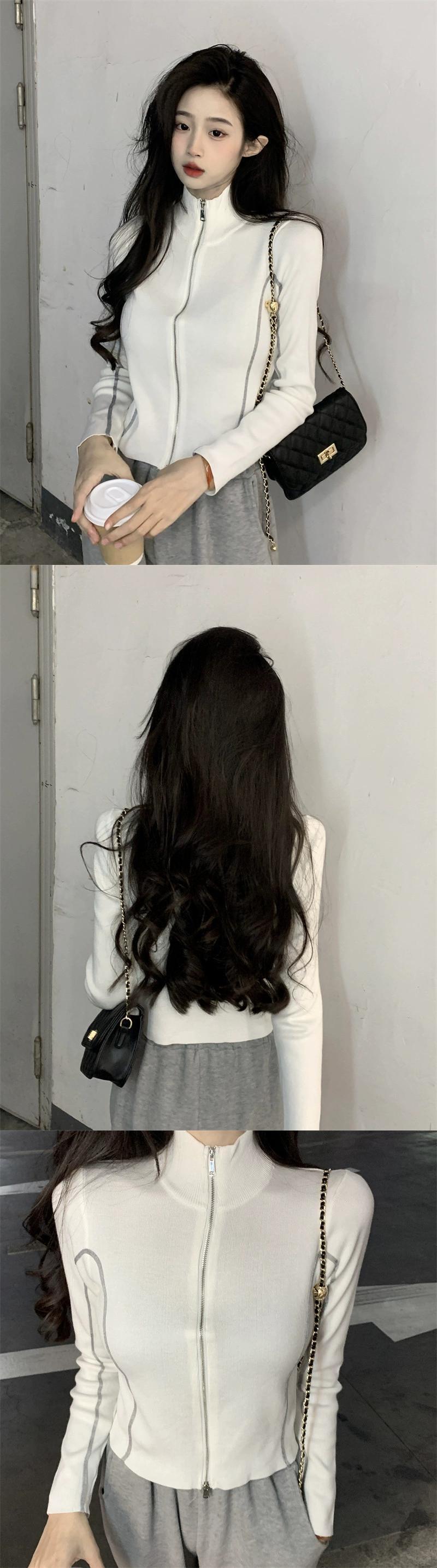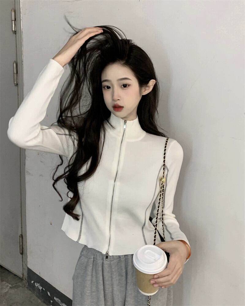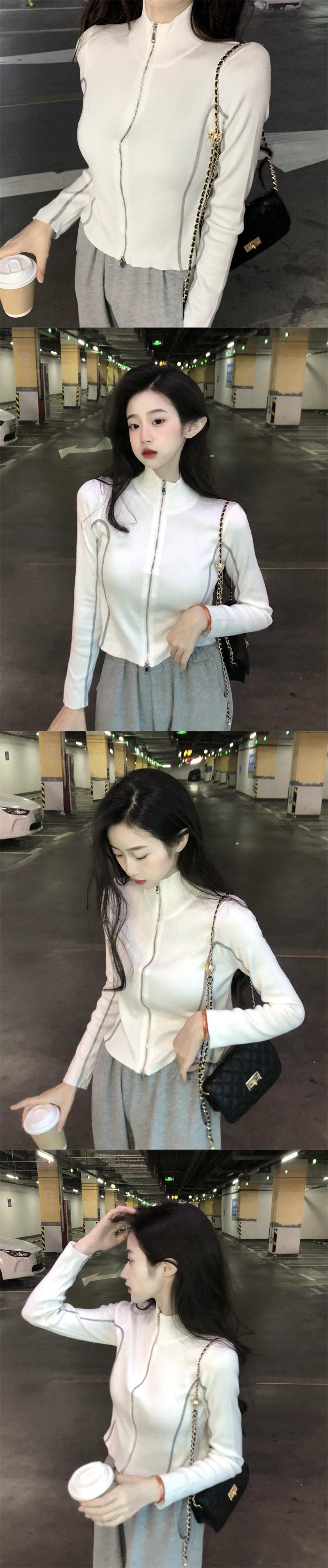 ジッパーニットカーディガンレディースシックシックセータージャケット2023初春新作ブラックショートトップ スプリング 春物 857161058091700