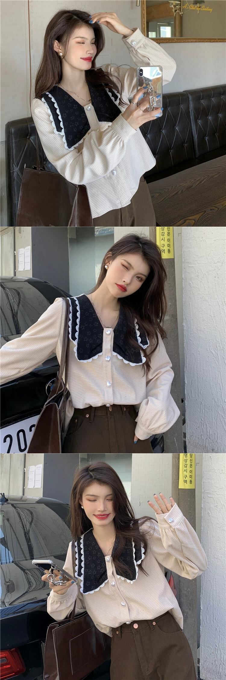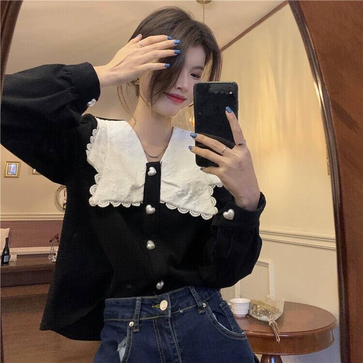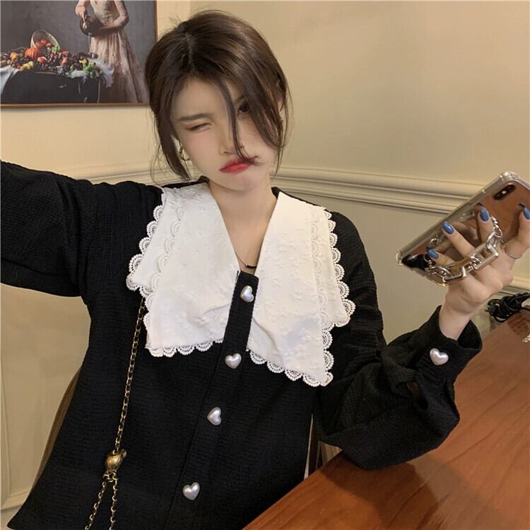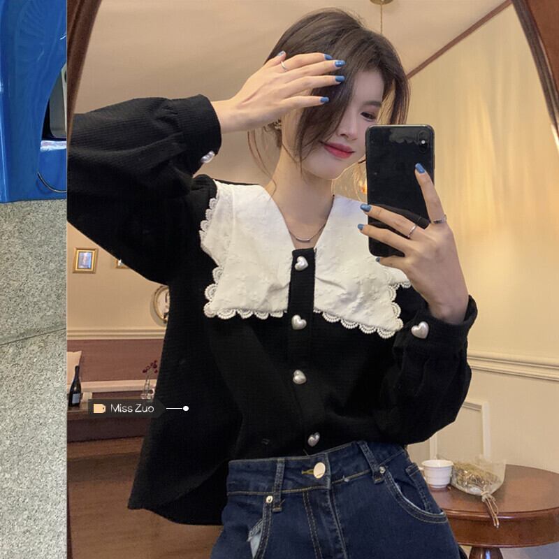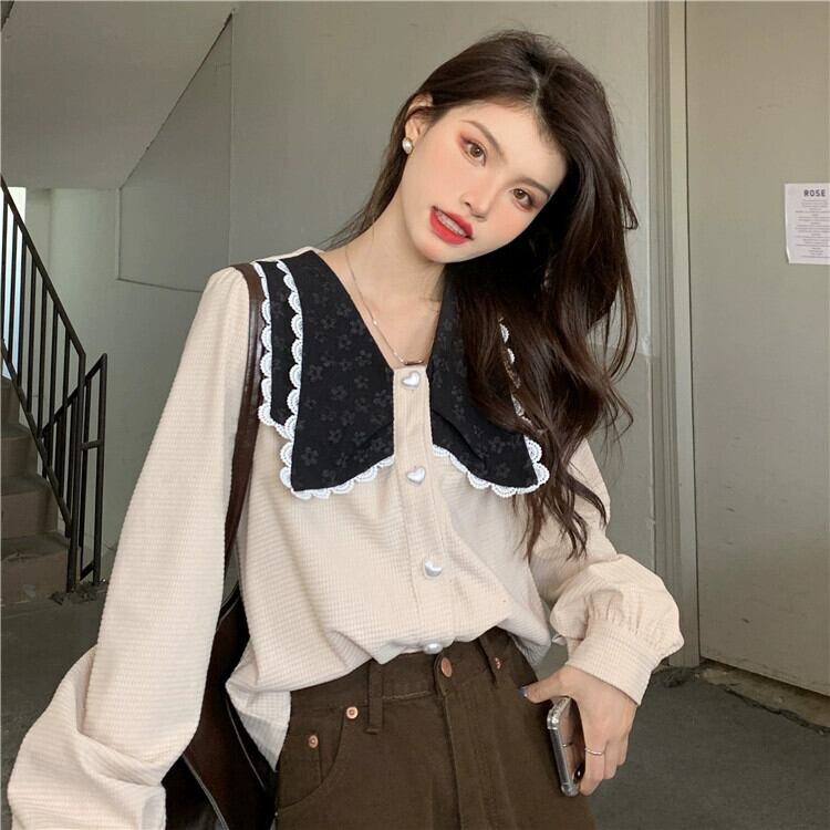 ベビードールカラートップレディース初秋新デザインニッチフレンチシック高級ミルキー甘く優しいシャツ 大人ガーリー スウィート キュート カジュアル オータム 秋物 8571670241961262