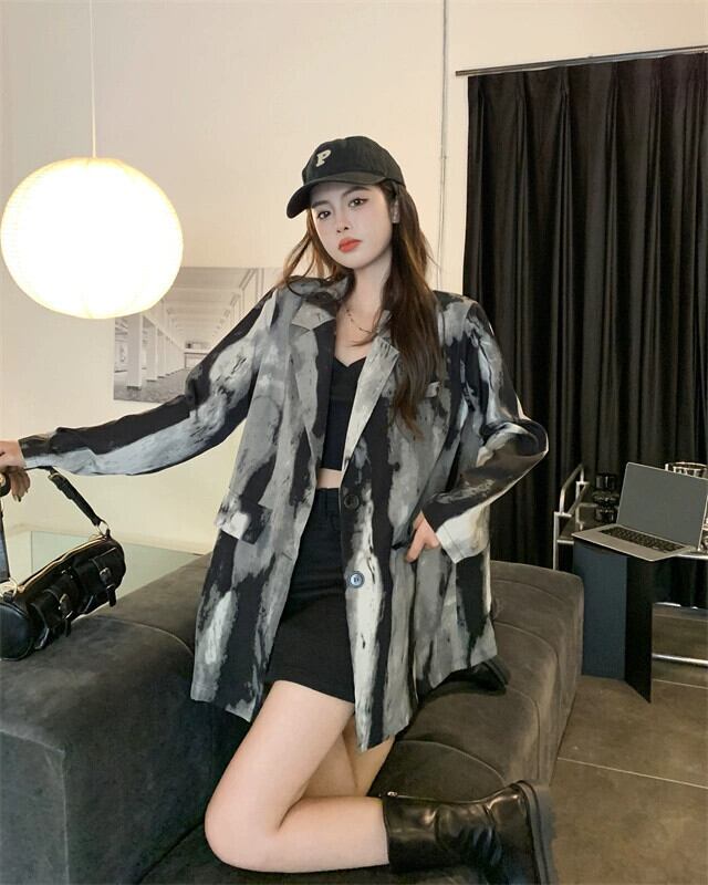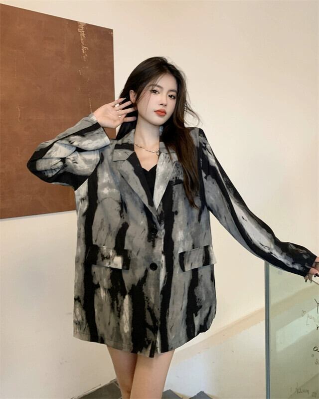 タイダイシャツジャケットレディース2023年初秋新レトロ香港スタイルデザインニッチハイエンド長袖トップ ロング オータム 秋物 8571660656955423