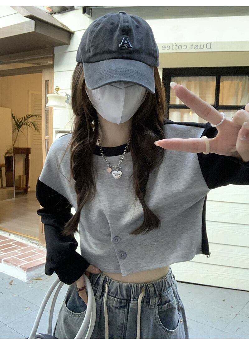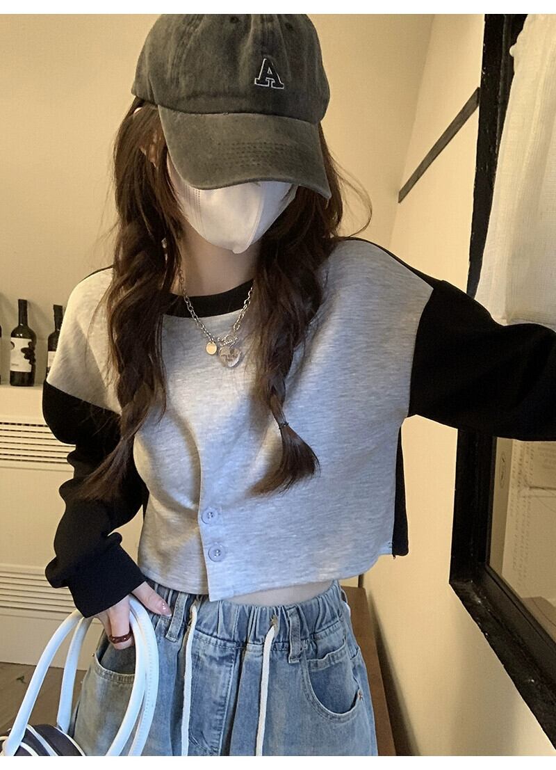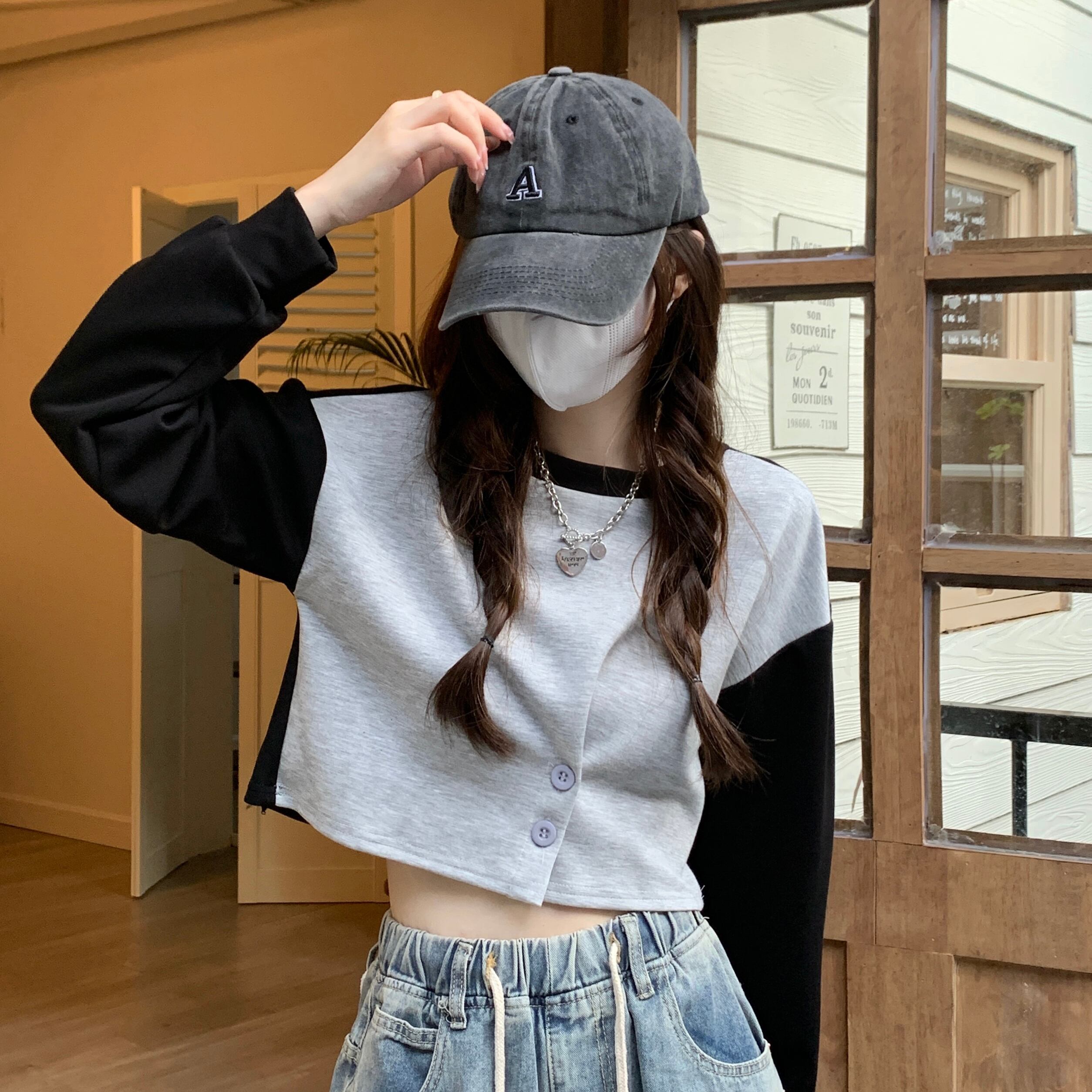 アメリカンレトロショートスウェットシャツレディースデザインニッチ2023秋新作長袖トップ小人 ロング オータム 秋物 8571631911918419