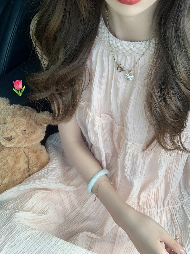 ピンクの吊りネックドレス女性の夏フレンチ甘い初恋優しいデザイン海辺の休日シフォンロングスカート 大人ガーリー スウィート キュート カジュアル サマー 夏物 8571635643950654