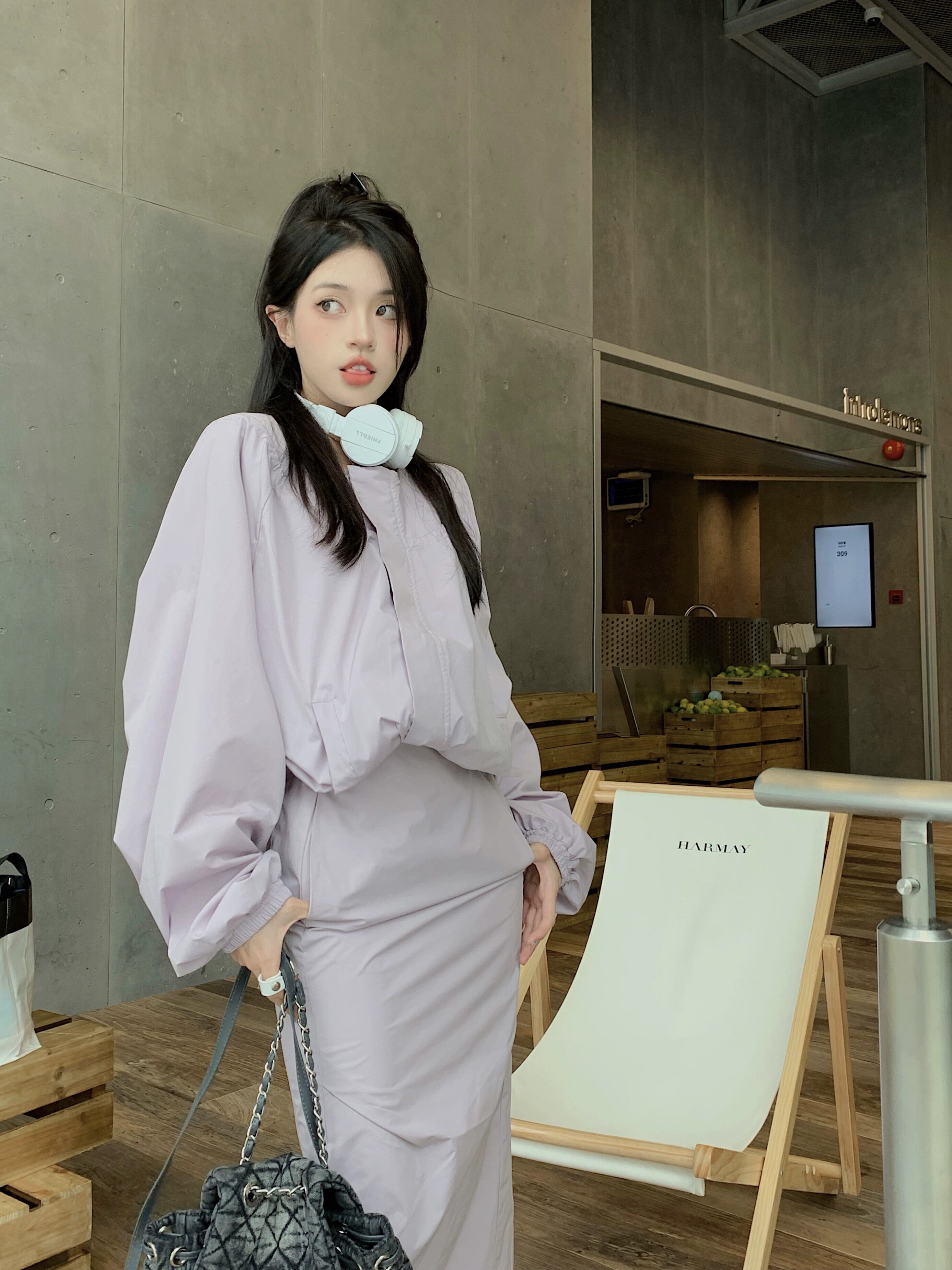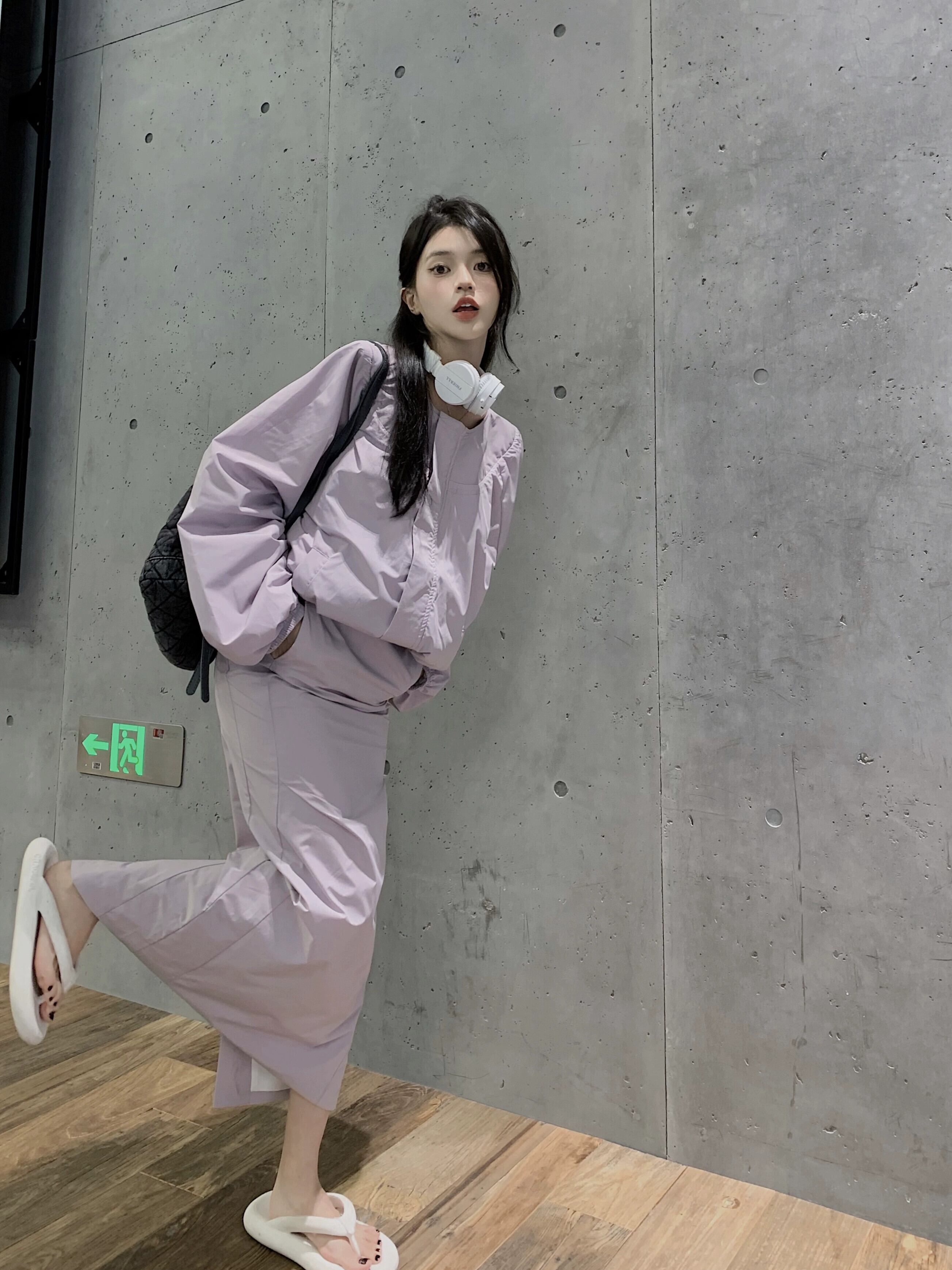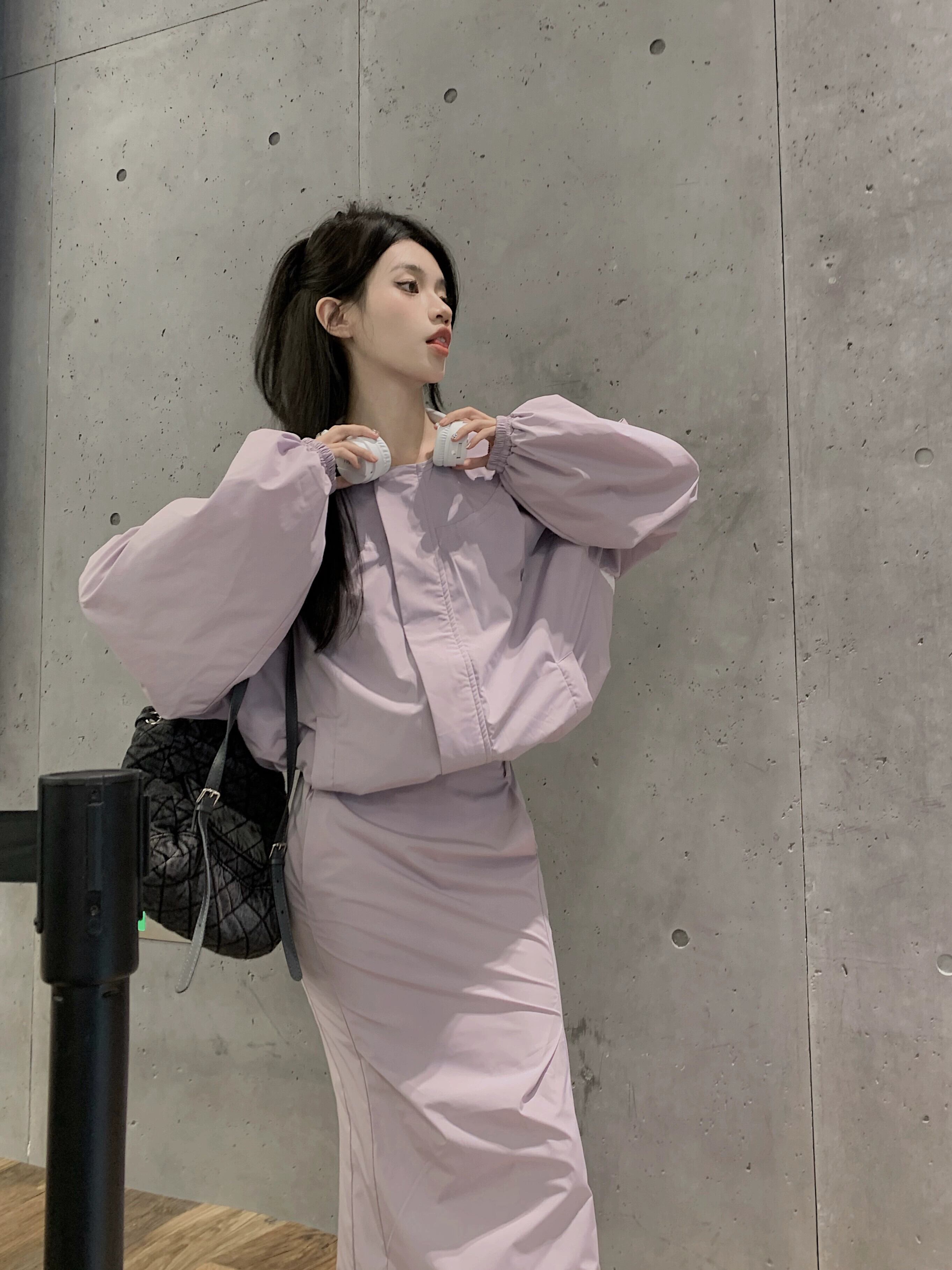 色:黒いセーター,黒スカート,紫のスカート
