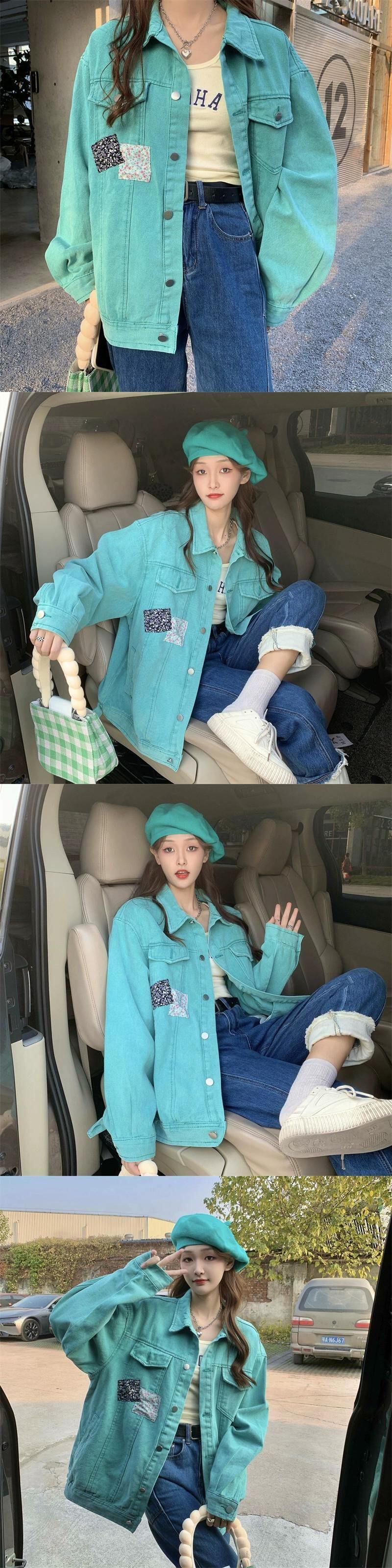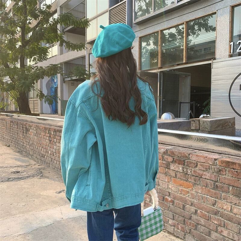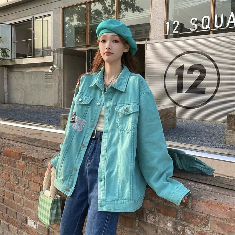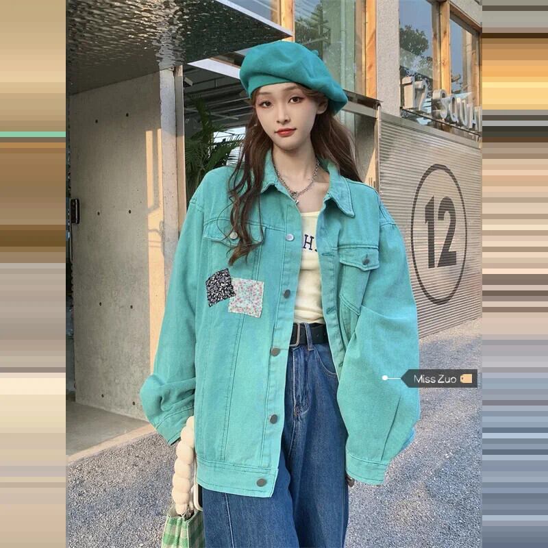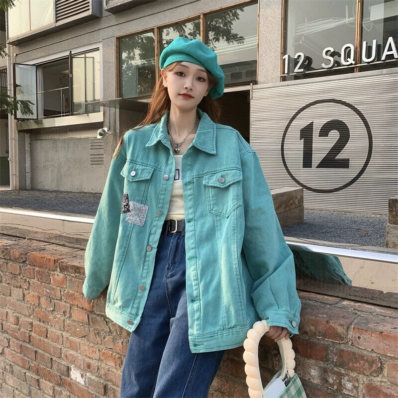グリーンデニムジャケット女性秋 2023 新しいアメリカンレトロデザインニッチルーズ bf 怠惰なスタイルトップ オータム 秋物 8571657472565267