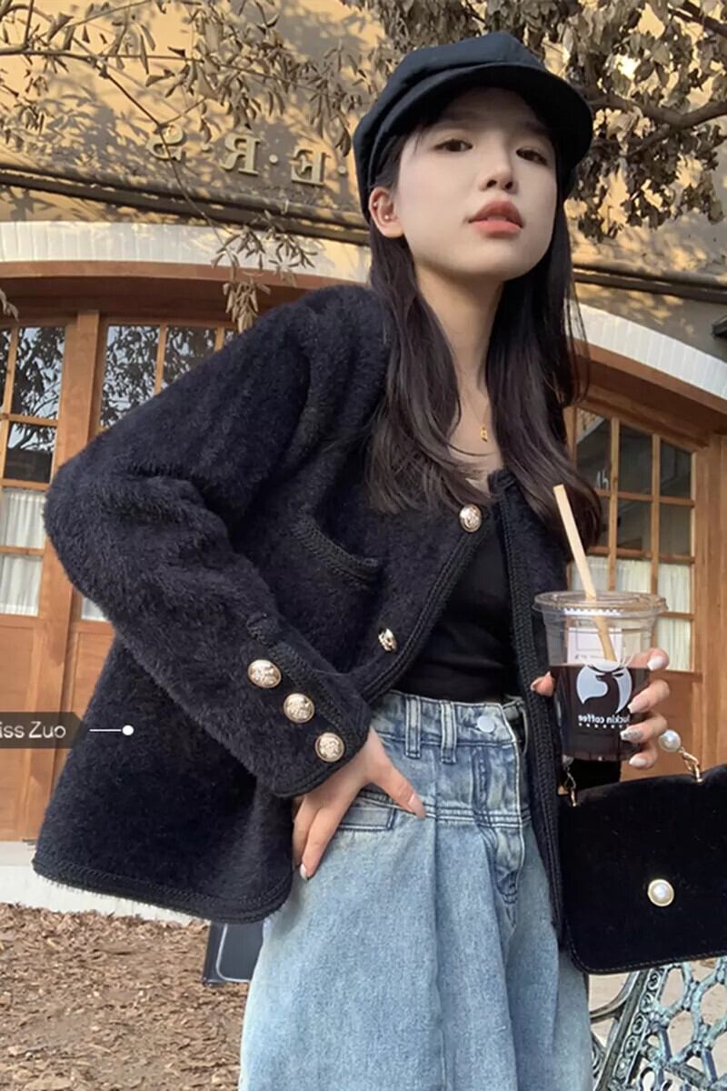 黒の小さな香りのジャケット、フェミニンでエレガントな秋冬の新しいスタイル、小型、高級、レトロなトップス ブラック オータム 秋物 ウィンター 冬物 8571680547100466