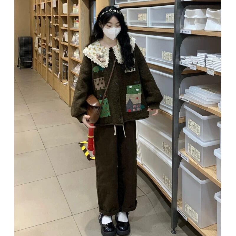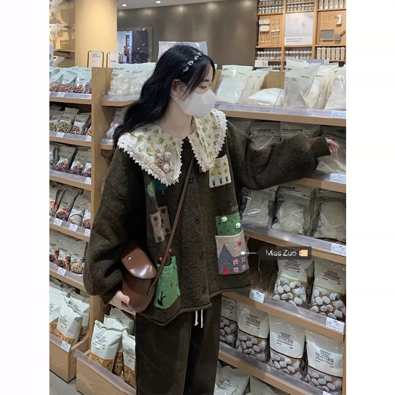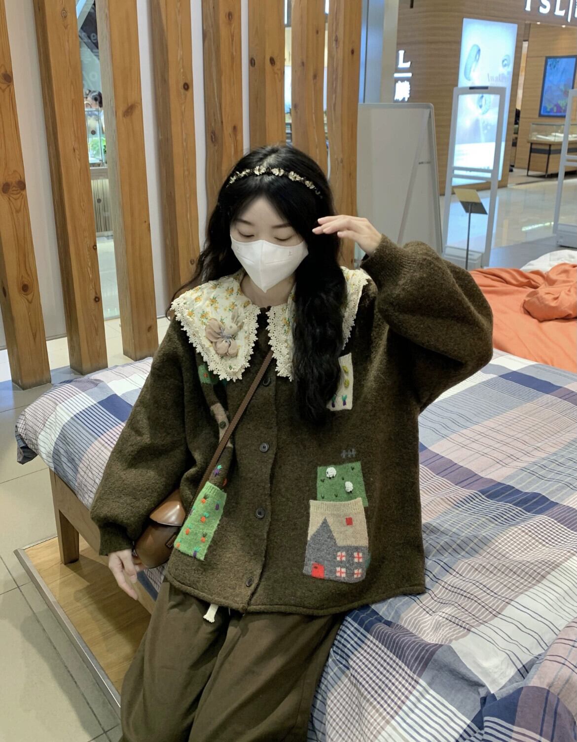 アート生乳甘いセータージャケット女性の秋 2023 ルーズレトロ怠惰なスタイルニットカーディガン 大人ガーリー スウィート キュート カジュアル オータム 秋物 8571677647058534