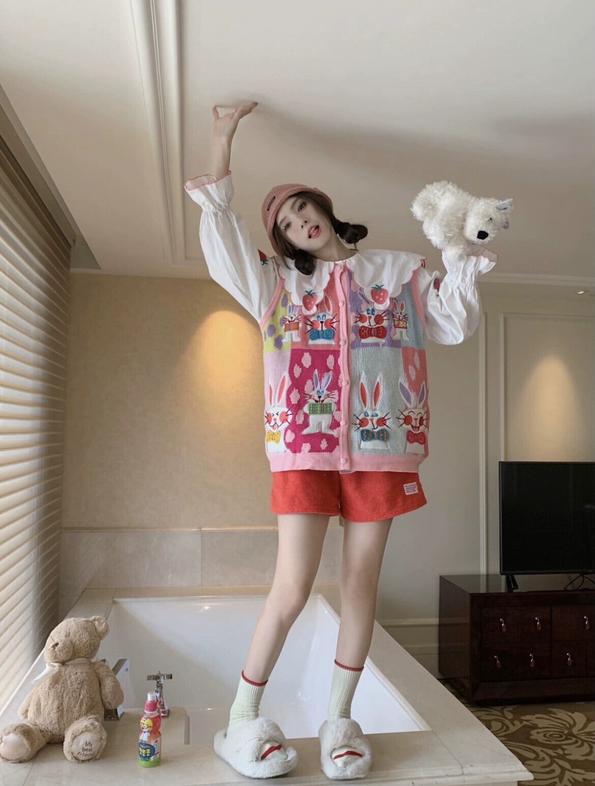 スタイルニットセーターベストジャケット女性秋と冬のシャツレイヤードベストレイヤードチョッキファッショナブルなベスト レッド オータム 秋物 ウィンター 冬物 8571692408001863